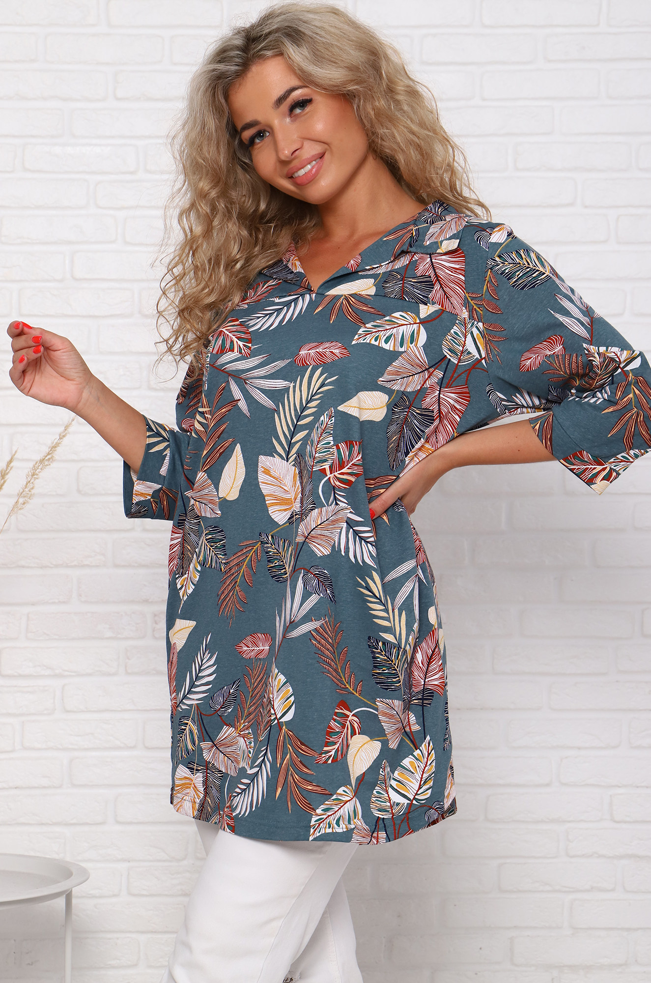 Удобная, модная и невероятно уютная туника с отложным воротником в симпатичной расцветке. Модель с отрезной кокеткой, рукав 3/4 с манжетом, спинка немного удлинённая. Благодаря комфортной длине, вы можете носить тунику дома как отдельный предмет одежды или сочетать с леггинсами, бриджами, узкими джинсами или брюками для прогулок. Подходит на любую фигуру, на разный возраст.