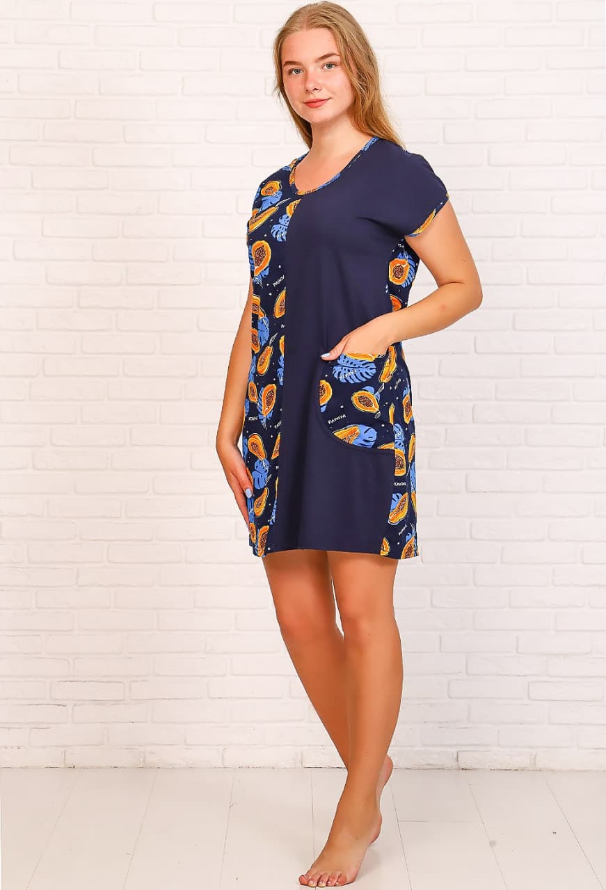 Домашняя туника прямого фасона из комбинированных тканей, с кармашком. Выполнена из трикотажного кулирного полотна со 100%  содержанием хлопка.