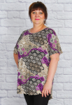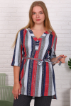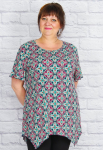Комбинированная хлопковая туника. Модель прямого кроя, с цельнокроенным рукавом, в боковых швах карманы, комфортная длина.