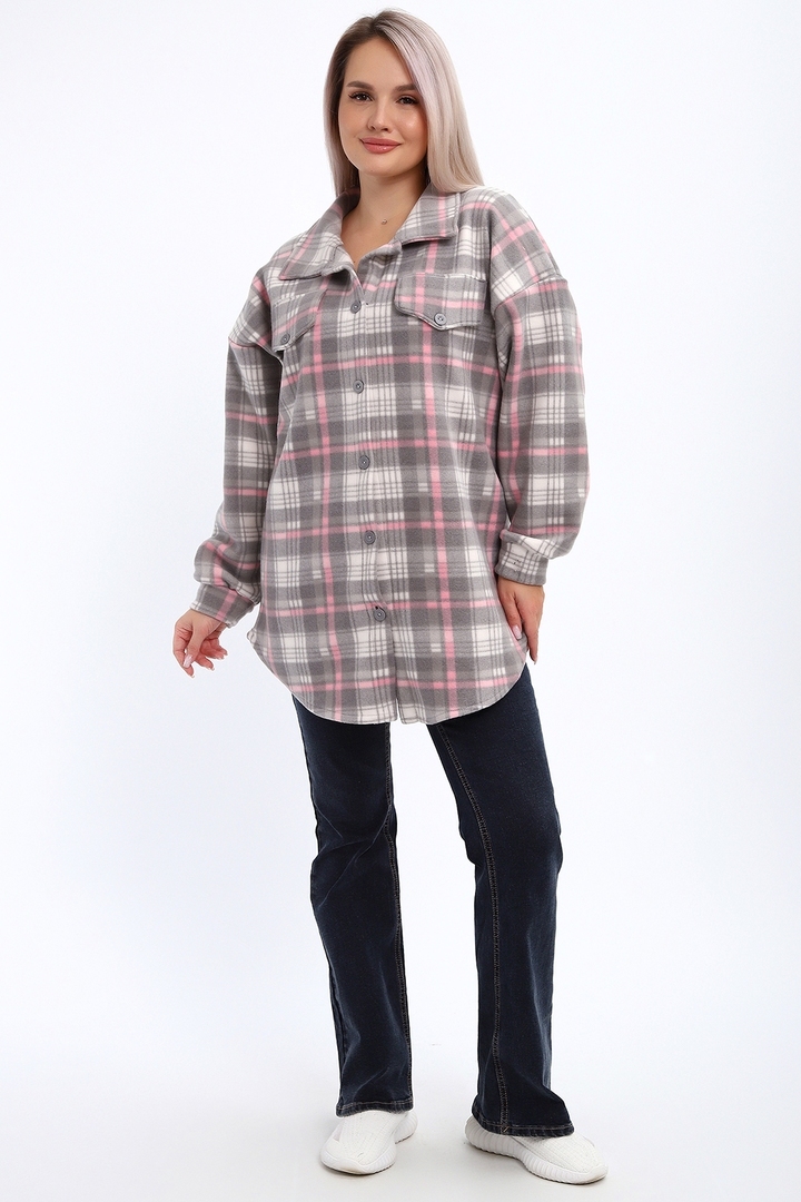 Туника на пуговицах флис - 885 - серо-розовый