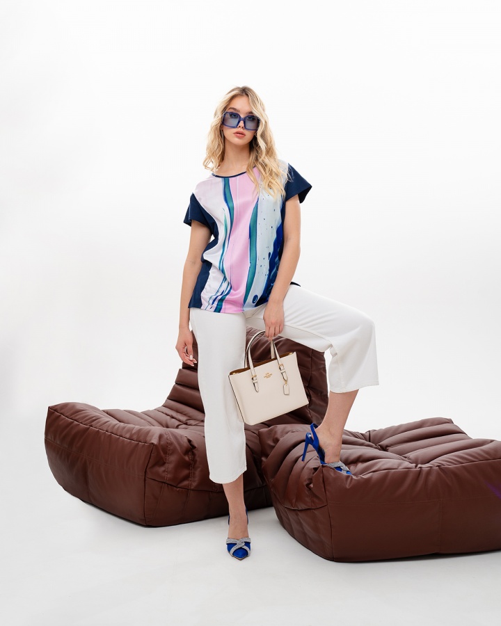Туника женская сделана из премиальной хлопковой кулирки, а основой под принт стала шелковая вставка. Эти ткани можно спокойно стирать в стиральной машинке, они сохраняют свой вид надолго.