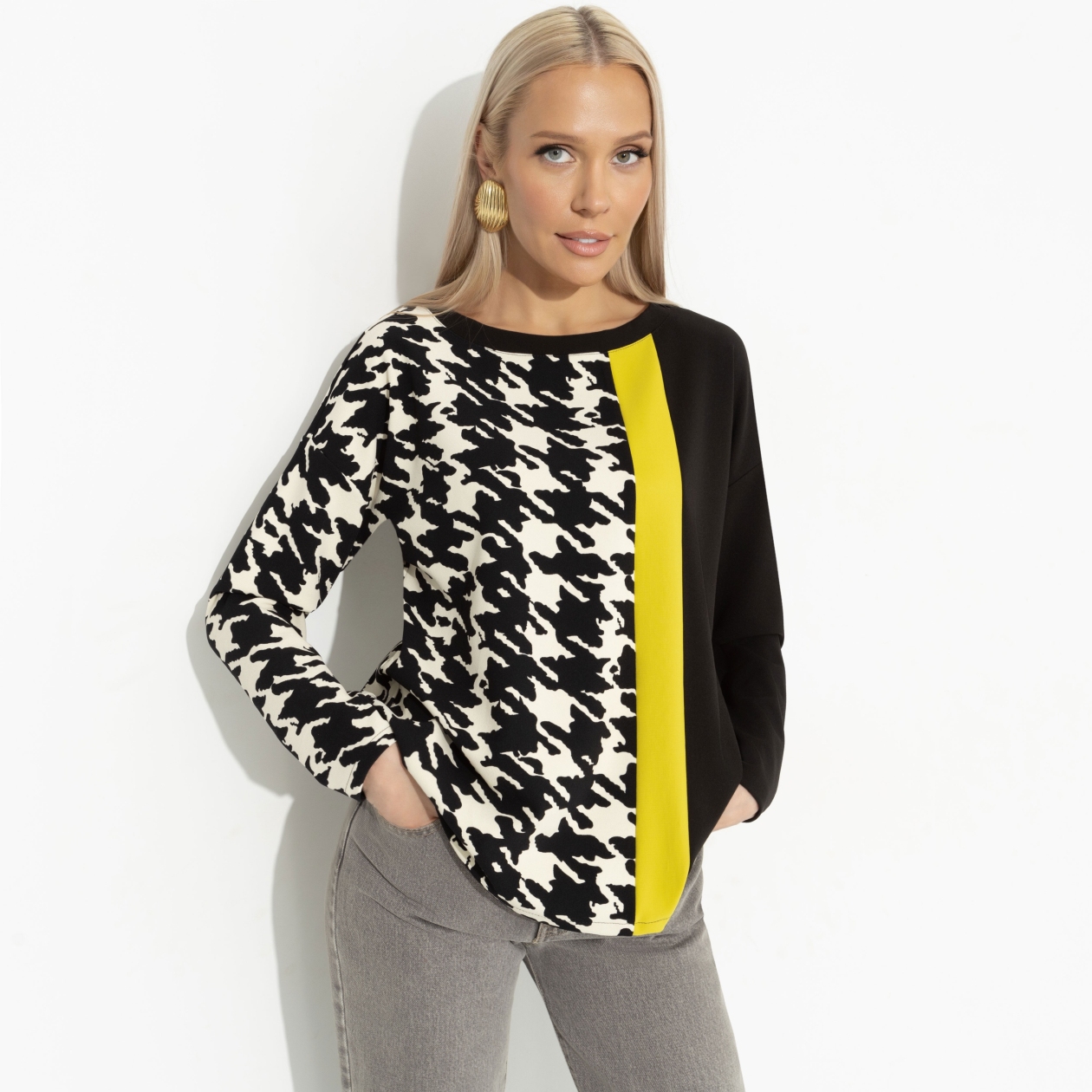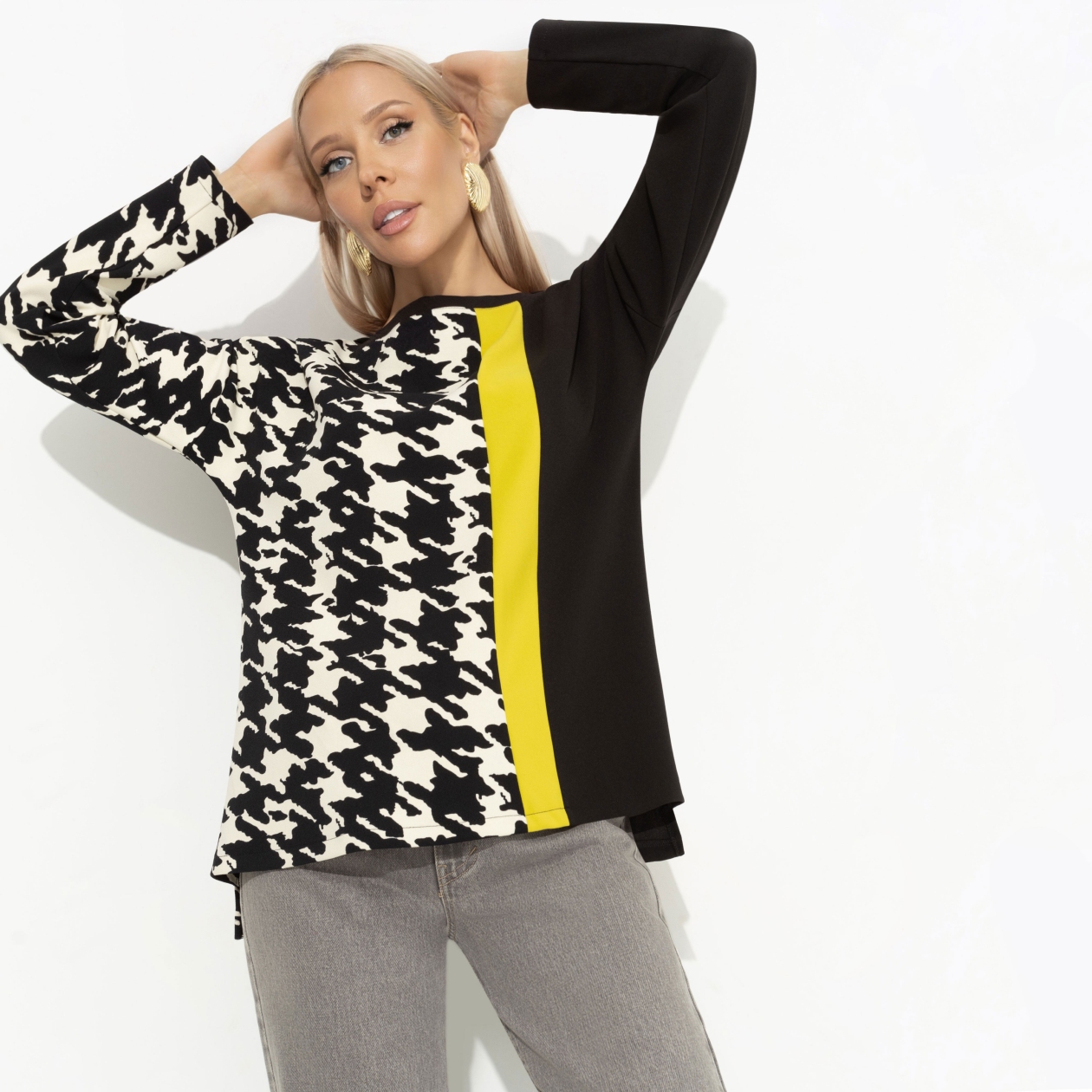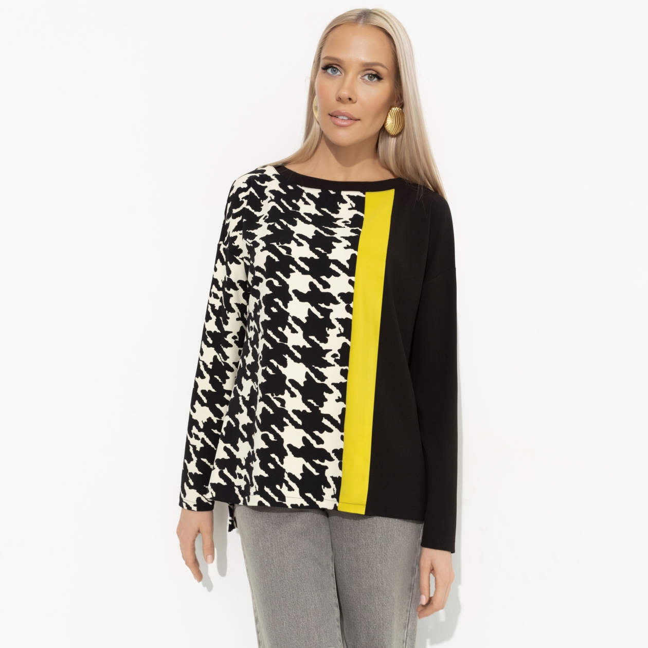 Делать селфи и получать тысячи сердечек не так легко, как кажется. Выдерживать объем внимания к себе нужно уметь. Ты годами тренировала этот навык и теперь можешь собой гордиться. Фото в тунике CHARUTTI возможно побьет рекорды твоей страницы. Туника прямого кроя в контрастных оттенках. Изделие хорошо будет смотреться на любом типе фигуры. Спущена линия плеча.