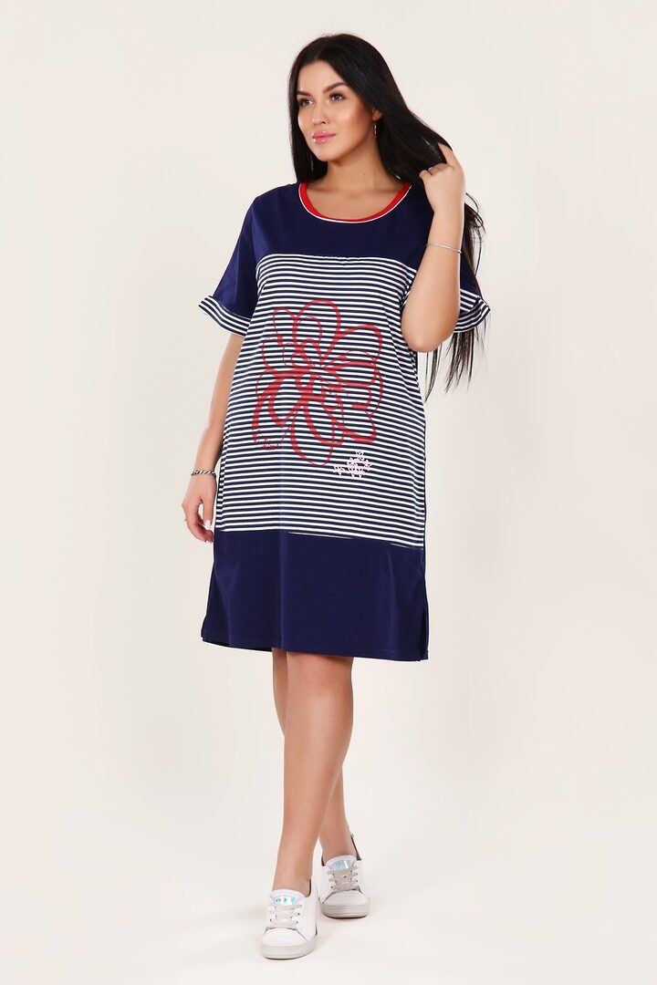 Туника женская в полоску макси - Орион - 204 - т-синий