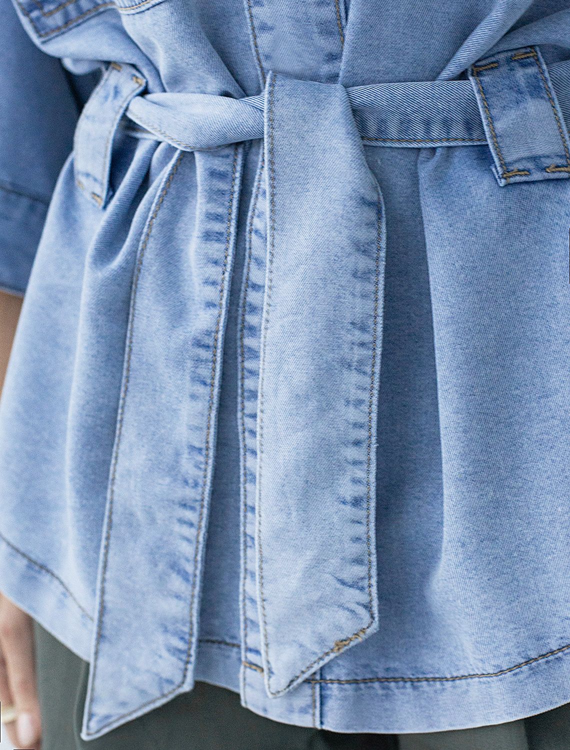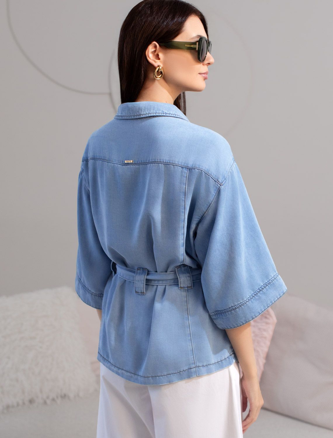 Удлиненная блузка с поясом и карманами из джинсового лиоцелла
