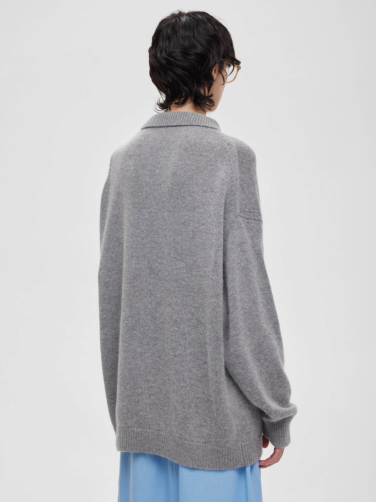 Удлиненный джемпер регби с ангорой, со спущенной линией плеча по спинке и широкими рукавами. Изготовлен из смесовой пряжи улучшенных свойств. Комбинация пуха ангорского кролика и тонкой шерсти в составе создают текстуру с характерным ворсом.