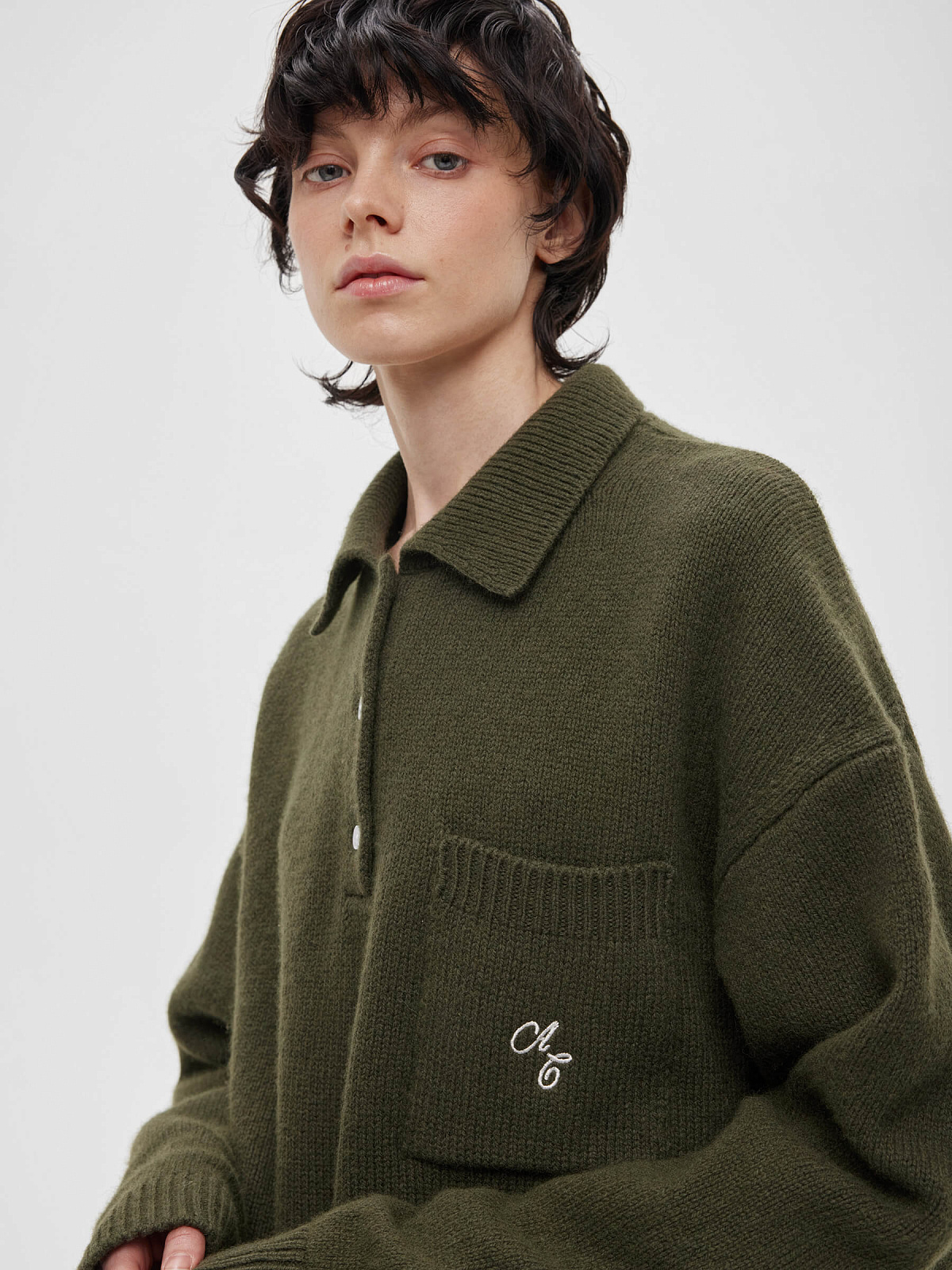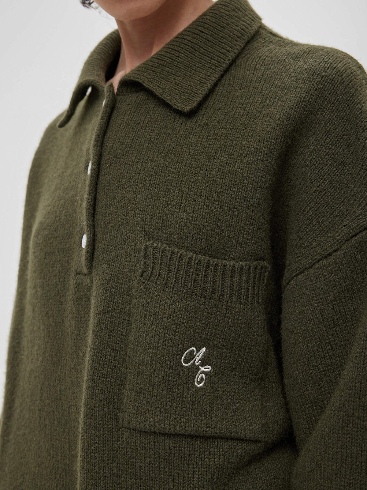Удлиненный джемпер регби с вышивкой, темно-зеленый
