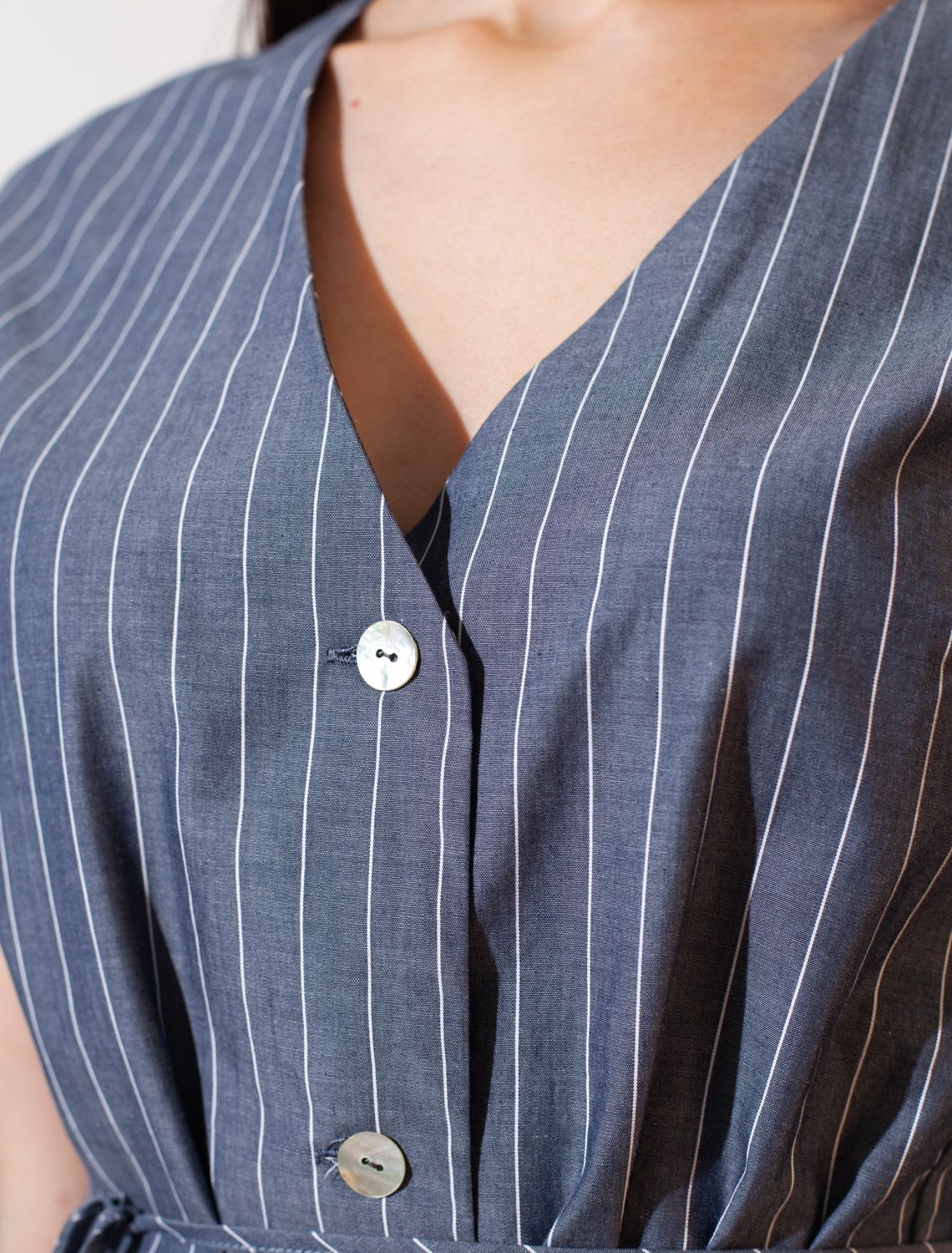 Эффектный удлиненный жилет серо-синего цвета в полоску выполнен из легкого хлопкового поплина плотностью 106 Г/м2. Стильный фасон и легкий материал делают эту жилетку идеальным вариантом для лета и межсезонья. Пояс мягко акцентирует талию, красиво подчеркивая силуэт и корректирует пропорции. Вертикальная полоска визуально вытягивает фигуру и скрывает недостатки, а крой плавно повторяет контуры тела, сохраняя свободу движения. Благодаря продуманному крою она сидит идеально на разных фигурах, в том числе и на больших размерах. Натуральный состав ткани обладает высокой воздухопроницаемостью, а также способностью поглощать и отдавать влагу. В жилетке будет очень комфортно, благодаря правильной регуляции температуры тела.Такой жилет помогает создать актуальный и функциональный летний гардероб: он превосходно сочетается с разными низами, мгновенно преображая любой аутфит.