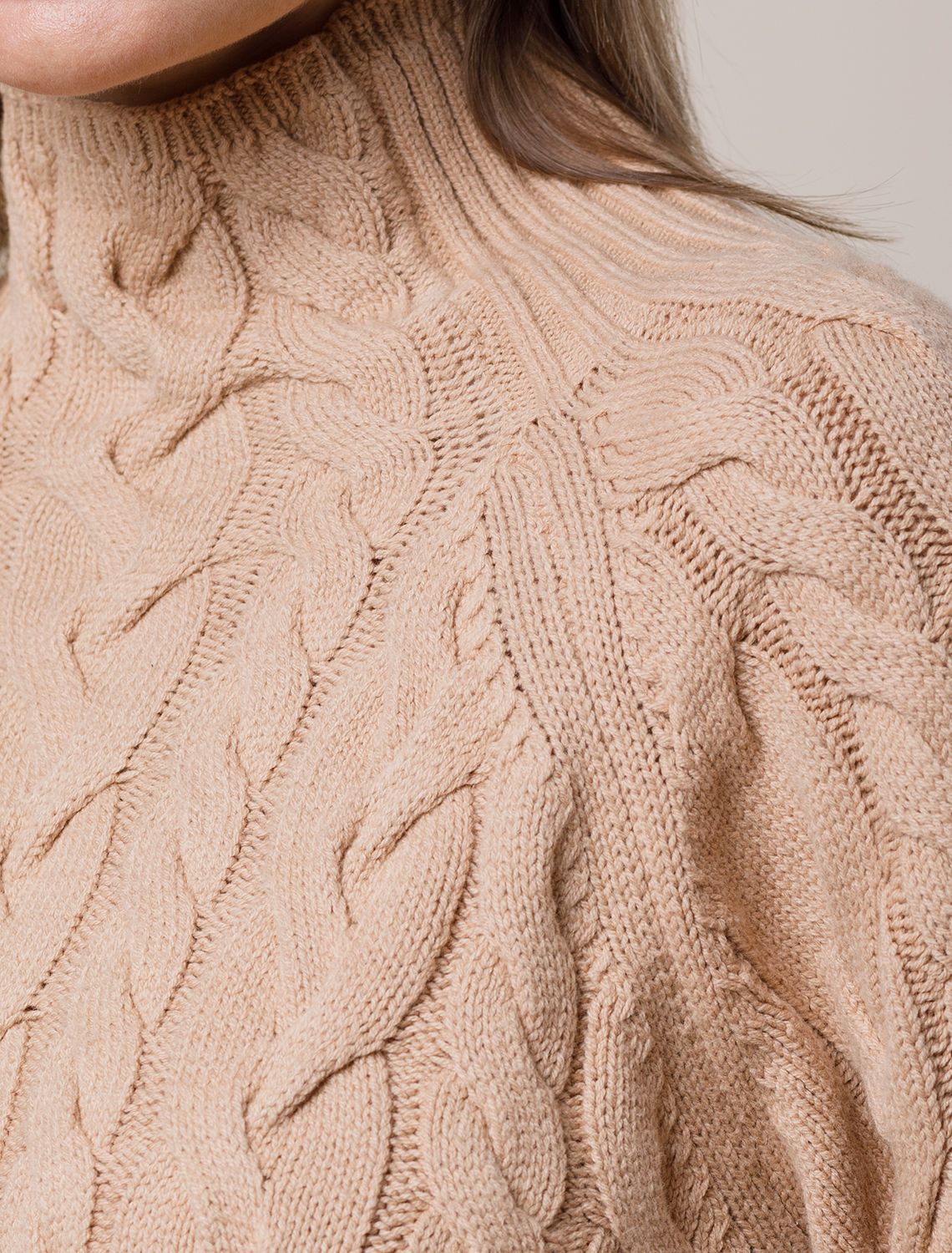 Удлиненный свитер фактурной вязки с узором косы