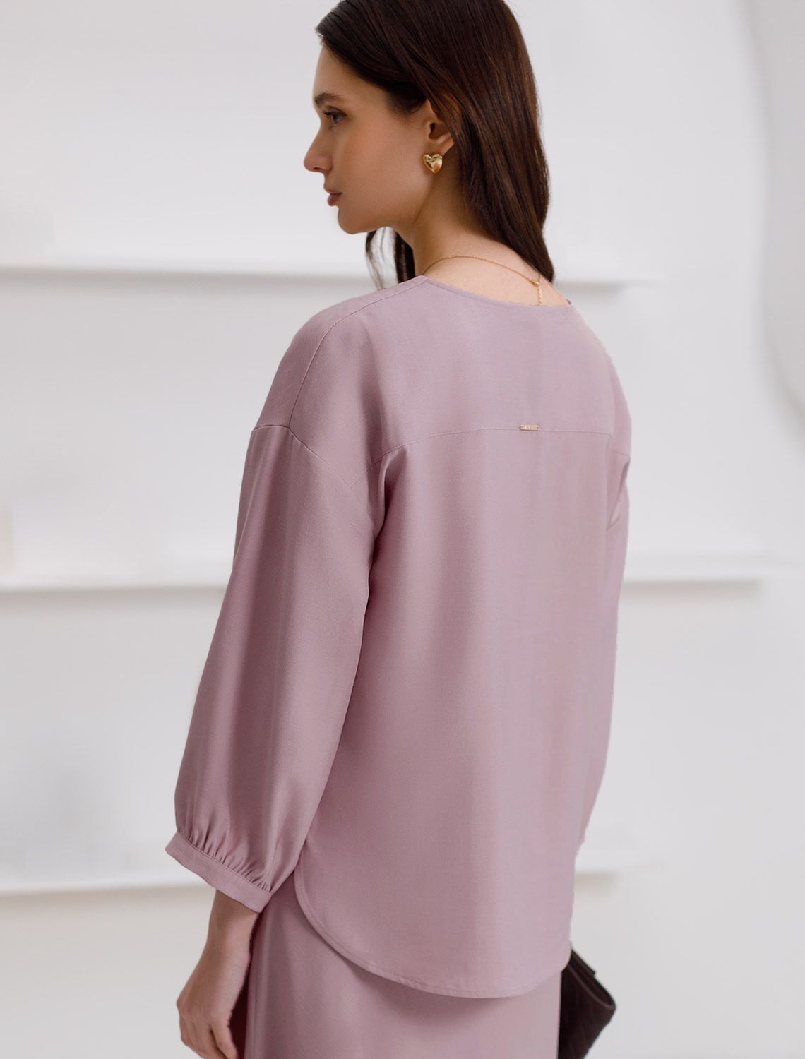 Элегантная укороченная блузка нежного зефирно-розового цвета выполнена из плотного лиоцелла. Лиоцелл это более дорогой и экологичный вариант вискозы, очень прочный и шелковистый. Ткань отличается от регулярной коллекции из лиоцелла - она содержит еще больше лиоцелла (92%), благодаря чему имеет более нежную шелковистую фактуру. Модель дополнена объемными рукавами длиной 7/8, создающими модный акцент. Укороченная передняя часть блузки выгодно подчеркивает линию талии, а удлиненная спинка обеспечивает комфорт. Этот асимметричный фасон придает образу динамичности, а V вырез визуально вытягивает силуэт. Свободный крой романтиной блузки не сковывает движений и отлично садится по фигуре даже на большие размеры, скрывая возможные недостатки. Эта легкая блузка с застежкой на пуговицы идеальный выборо для комфорта и стиля в теплое время года, она идеально адаптируется под любой повод.