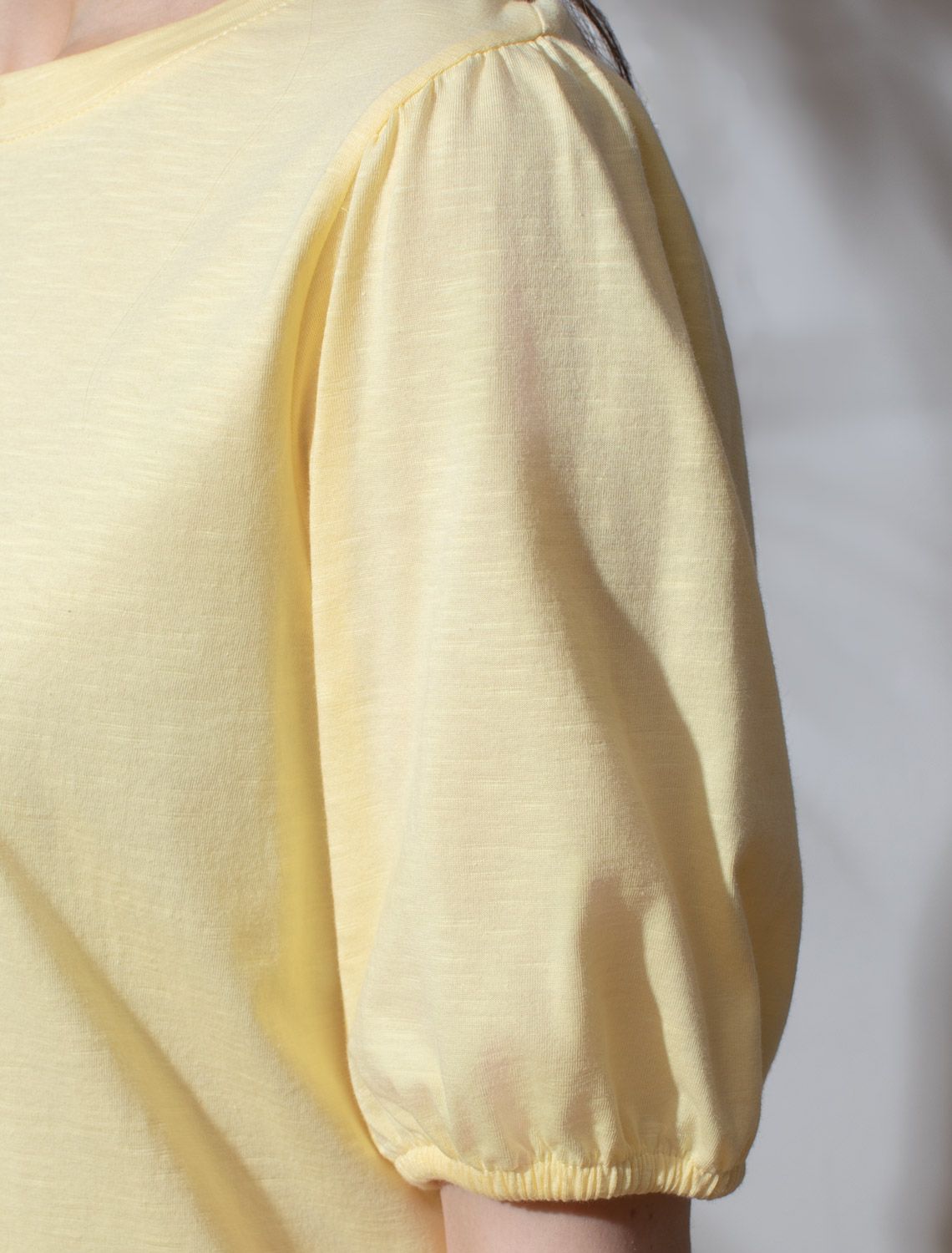 Футболка бананового цвета с объемными рукавами-буфами выполнена из фактурного трикотажа плотностью 140 Г/м2. Текстура материала создает интересный эффект с характерными горизонтальными "штрихами", создаваемыми использованием нитей разной плотности, что делает повседненую футболку особенно стильной, при этом она идеальна для жаркой летней погоды и позволяет чувствовать легкость и удобство. Футболка прямого кроя отлично садится на любую фигуру, обеспечивая свободу движений. Дышащая ткань из натурального 100% хлопка пропускает воздух и не вызывает дискомфорта при длительном ношении. Модная короткая футболка добавляет яркости образу, сохраняя баланс между минимализмом и выразительностью. Базовая футболка хорошо держит форму и гарантирует долговечность даже при частой носке. Подходит для больших размеров до 56 включительно, свободная посадка позволяет чувствовать себя уверенно в любой ситуации. Круглый вырез горловины и рукава-фонарики дополняют общий минималистичный дизайн футболки, создавая аккуратный красивый силуэт. Такой фасон уместен для работы в офисе, для городского стиля, дома, в неформальной обстановке или даже на деловых встречах.