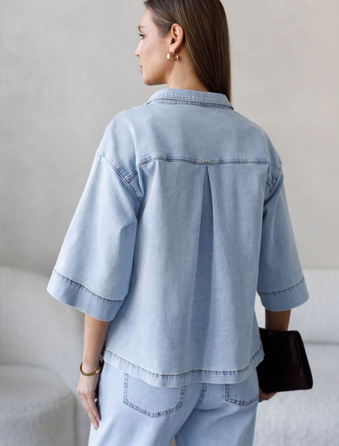 Укороченная рубашка с карманом из облегченного денима