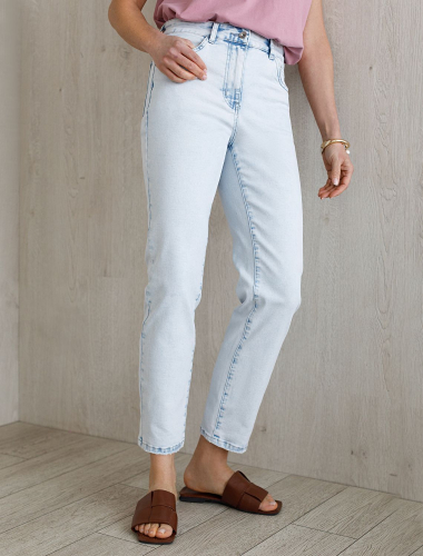 Укороченные джинсы c декоративной стиркой из эластичного плотного денима