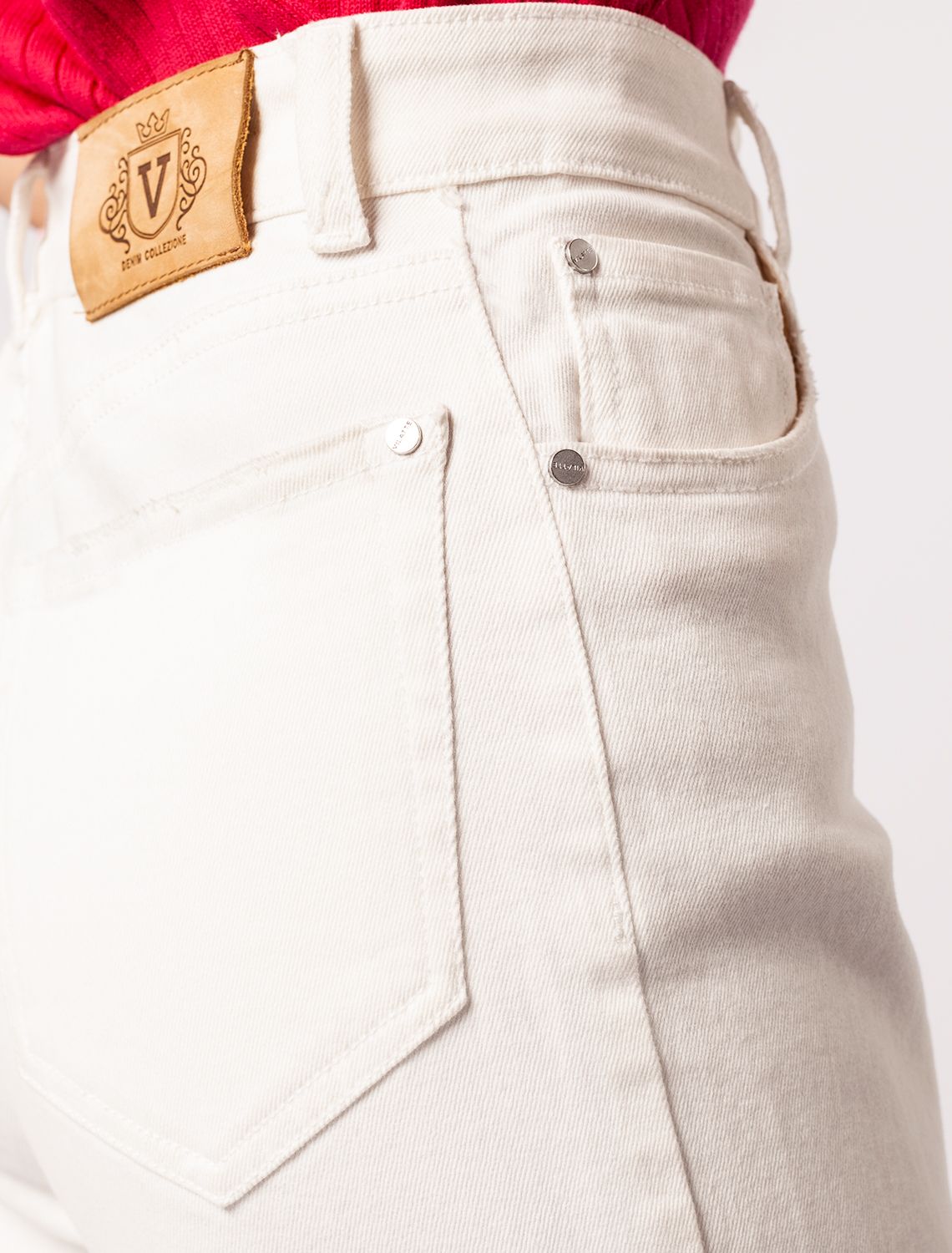 Белые джинсы из плотного прочного хлопка с добавлением нитей эластана. Укороченная модель изящно открывает лодышки. Высокая посадка грамотно подчеркивает силуэт. Данная модель легко и безупречно поможет составить модный образ вместе с трикотажным поло, свободной блузкой взаправку, футболкой или жакетом.