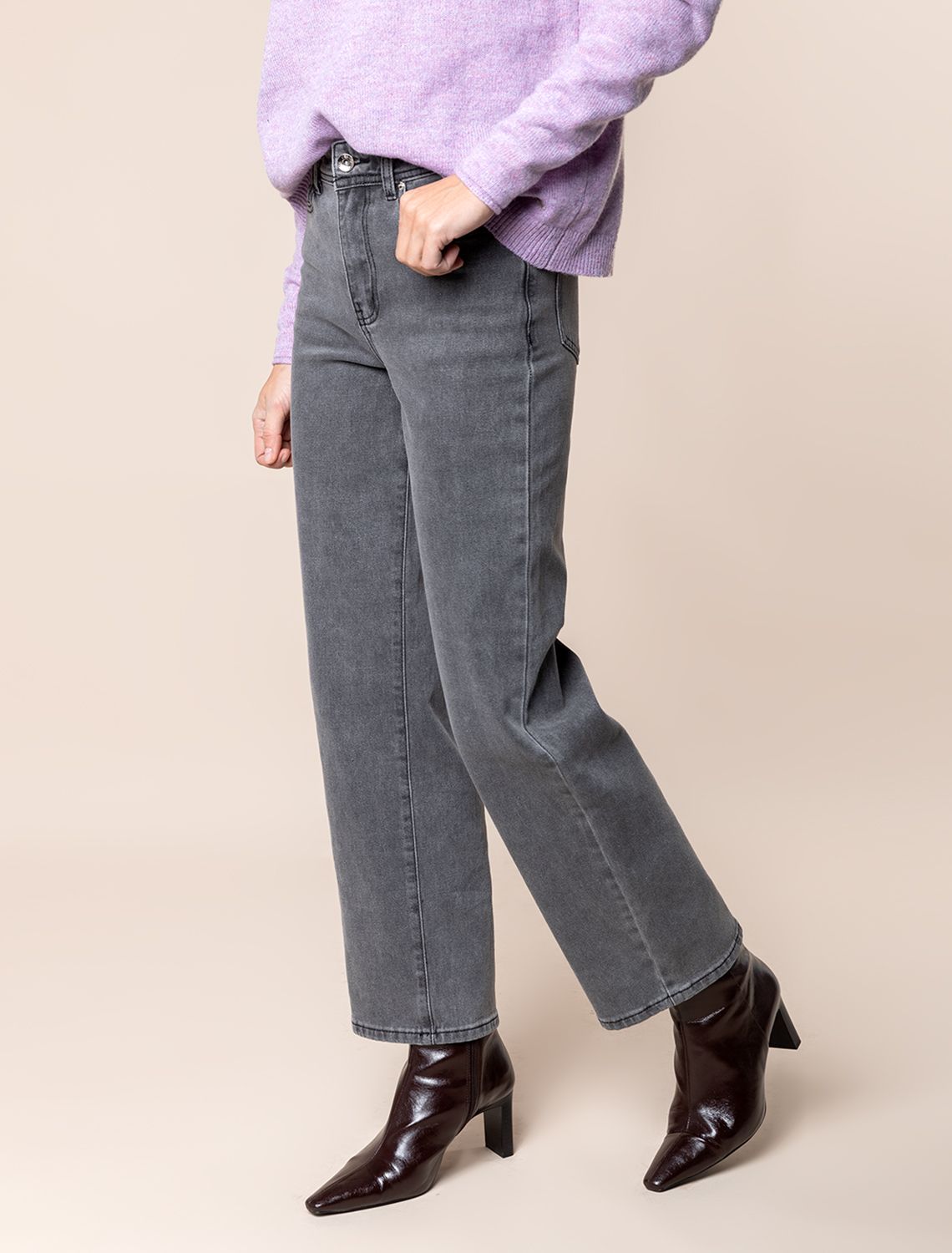 Рост 172, бюст 88, талия 64, бедра 88 Серые укороченные прямые джинсы с эластаном. Выполнены из хлопка с добавлением эластана. Отлично держат форму почти не мнутся, не деформируется даже после множества стирок. Модель t подходит абсолютно любому типу фигуры и вписывается в гардероб с любым верхом и обувью.
