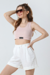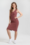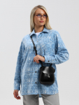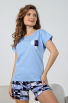 Сорочка молодежная из трикотажного полотна «кулирка» с набивным рисунком, слегка расширенная книзу, на узких бретелях, с разрезом в левом боковом шве. Вырез горловины переда, спинки, разрез в боковом шве - отделаны кружевом. На боковом шве выше разреза прикреплен декоративный бантик из узкой атласной ленты в тон кружеву.