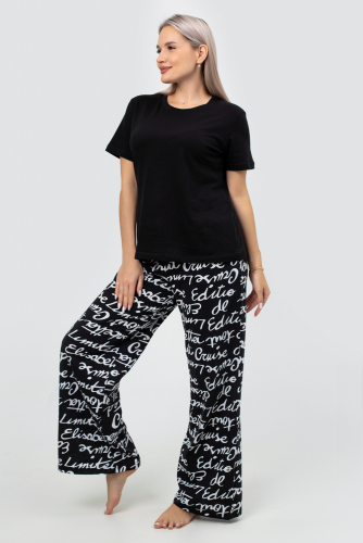 Идеальная женская пижама для весеннего и летнего сезона! Этот стильный и комфортный костюм двойка станет незаменимым элементом вашего домашнего гардероба. Брюки палаццо и однотонная футболка с коротким рукавом входят в комплект. Прямой крой и свободный фасон обеспечивают максимальный комфорт и свободу движений, что делает эту пижаму идеальной для сна, отдыха и повседневного ношения дома. Штаны с прорезными карманами на резинке идеально подходят для женщин и девушек любого роста и комплекции, включая полных и беременных. Они обеспечивают удобную посадку и не стесняют движений, что особенно важно для будущих мам. Принт с надписями добавляет пижаме стильный и нарядный вид, делая её подходящей даже для новогодних праздников. Футболка с коротким рукавом и прямым кроем выполнена из мягкого трикотажа, который приятно прилегает к телу и не вызывает раздражения. Однотонный дизайн позволяет легко сочетать её с другими элементами вашего гардероба, создавая базовые и стильные образы для дома. Костюм двойка оверсайз станет отличным выбором для женщин и девушек, которые ценят комфорт и стиль. Этот брючный костюм создан для тех, кто хочет чувствовать себя уютно и уверенно в любой ситуации. Наша женская пижама со штанами это не просто домашняя одежда, а настоящий символ уюта и комфорта. Станет отличным подарком для ваших близких на любой праздник, будь то Новый год или день рождения. Подарите себе и своим близким тепло и заботу с нашей стильной и красивой пижамой! Не упустите возможность приобрести эту уникальную пижаму, которая сочетает в себе все лучшие качества. Она станет вашим любимым элементом гардероба для дома и отдыха, обеспечивая уют в весенние и летние дни.