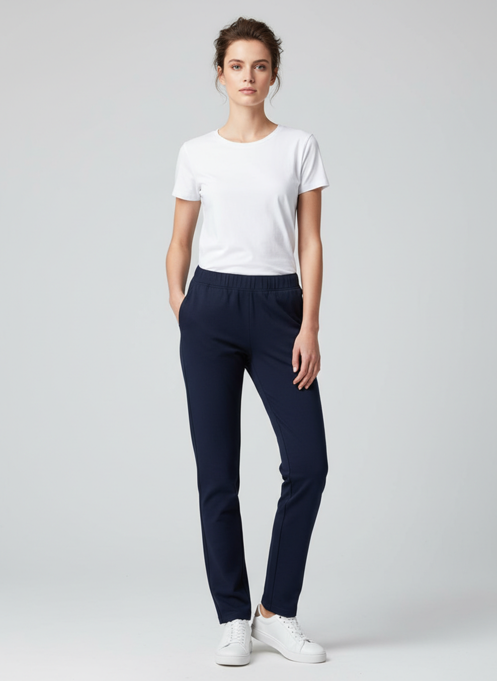 Женские брюки из футера 2-х нитки приталенного кроя отличный выбор для тех, кто ценит сочетание комфорта и стиля. Мягкая, уютная ткань держит тепло и приятно ощущается на теле, а облегающий силуэт выгодно подчеркивает фигуру, создавая женственный образ. Такие брюки прекрасно подойдут для прогулок, повседневной носки или домашнего отдыха. Классическая модель отлично сочетается с различными элементами гардероба, позволяя создавать стильные и удобные образы на каждый день.
