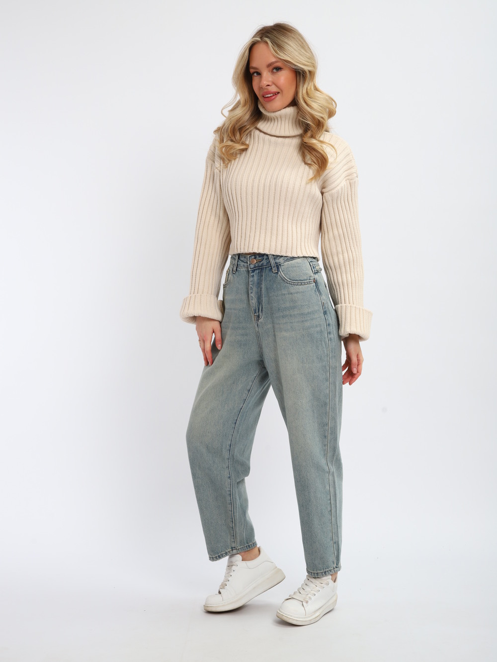 Джинсы женские на высокой посадке, светло-серые. Цвет: серо-голубой/джинс; Материал: джинс;джинс; Состав: 100% хлопок.