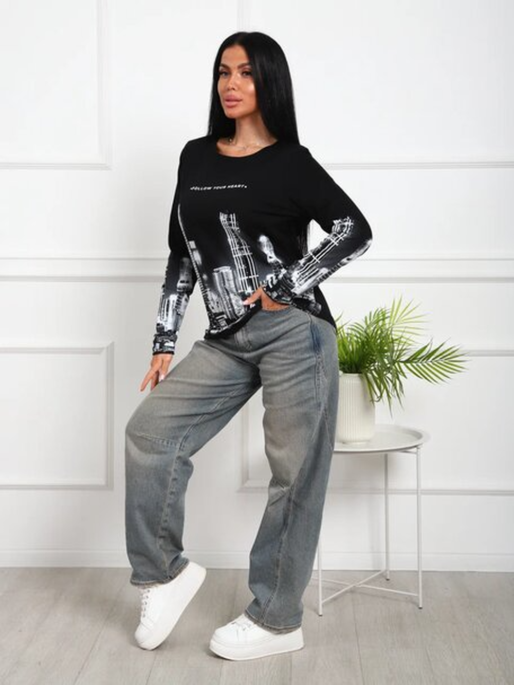 Комфортный и практичный элемент гардероба, выполненный из эластичного трикотажного материала. Обладает мягкой текстурой и хорошей воздухопроницаемостью, что обеспечивает удобство при носке. Имеет свободный крой, подходит для повседневного и спортивного стиля. Лонгслив легко комбинируется с различными вещами и незаменим в межсезонье. Цвет: черный; Материал: кулирка;кулирка; Состав: Хлопок 100%.