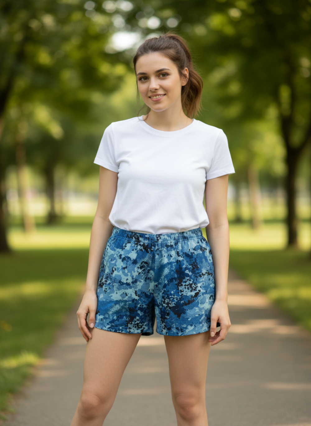 Шорты женские из футера 2-х нитки. Цвет: синий; Материал: футер 2-х нитка;футер 2-х нитка; Состав: 70% Хлопок, Шорты 5% ПЭ 25% Эл.