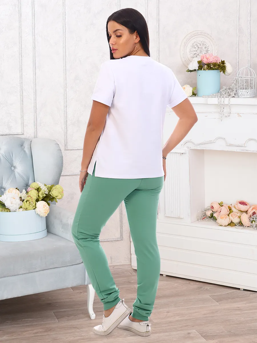 Вилена(олива)Брюки р.44 футер(80% хлопок,15% п/э 5% лайкра)