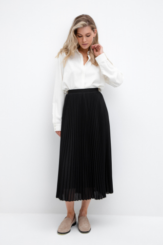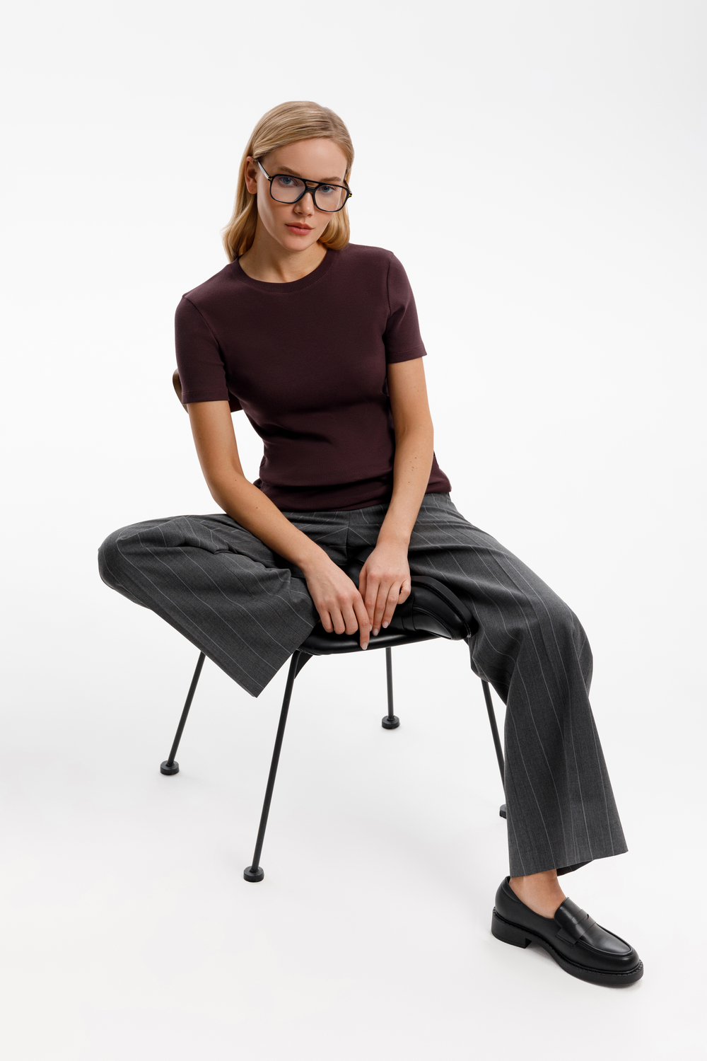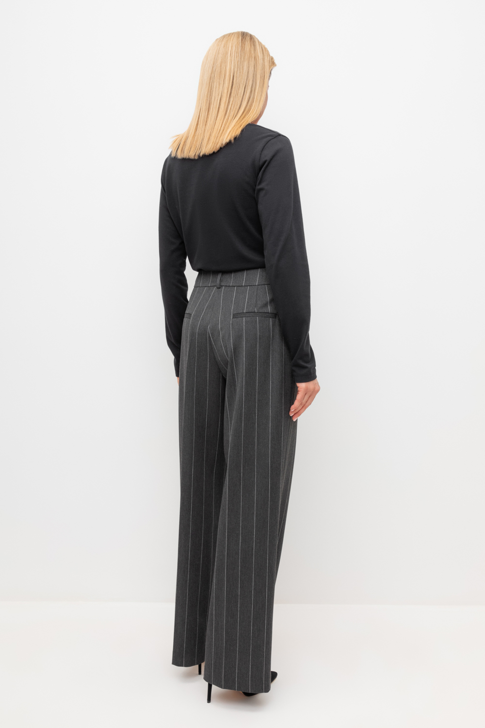Широкие брюки из шерсти с завышенной линией талии. Застегивается спереди на молнию и пуговицу. Пояс со шлевками для ремня.