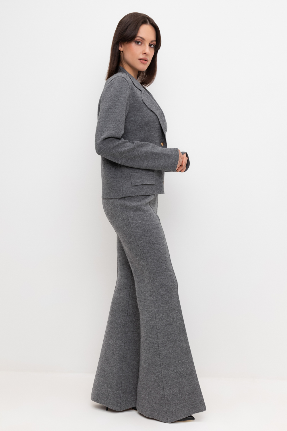 Удобные вязаные брюки со стрелкой из 100% шерсти. Шерсть в составе хорошо сохраняет тепло. Пояс на резинке.