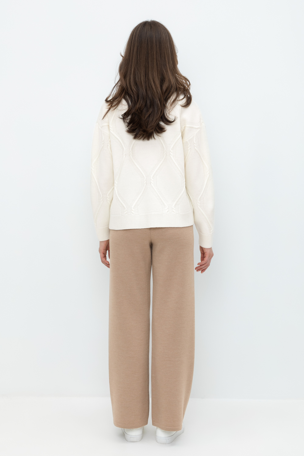 Удобные вязаные брюки прямого силуэта. Выполнены из мягкой полушерстяной пряжи. Шерсть в составе сохраняет тепло, а благодаря волокнам акрила изделие мягкое и дольше сохраняет форму.
