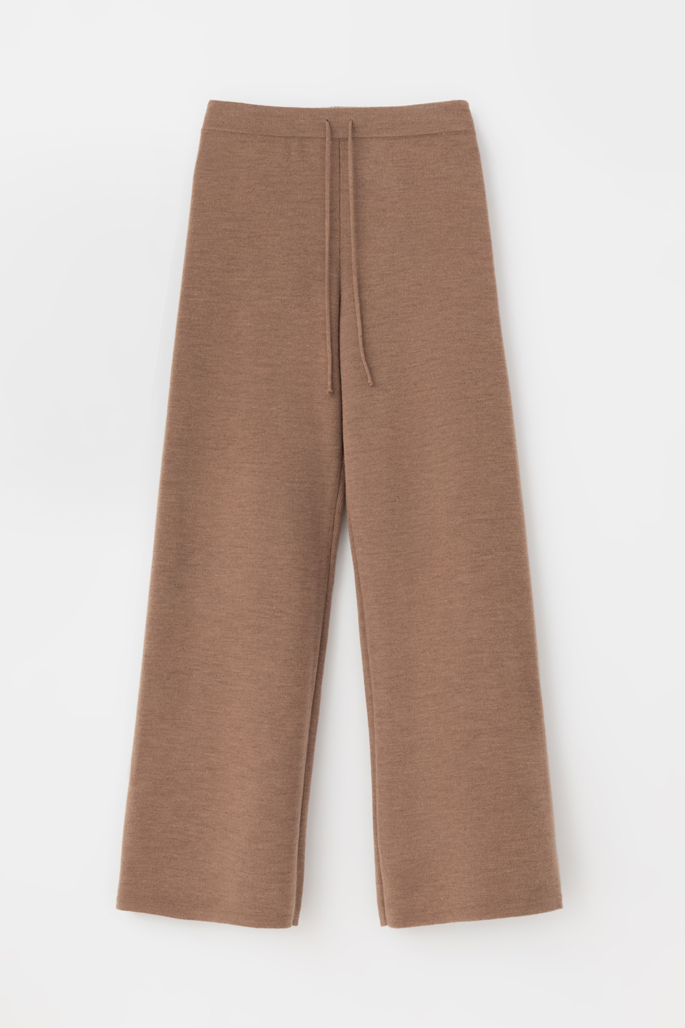 Пояс регулируется вязаным шнуром в тон брюк. Плотная фактура вязания согревает и сохраняет форму во время носки.