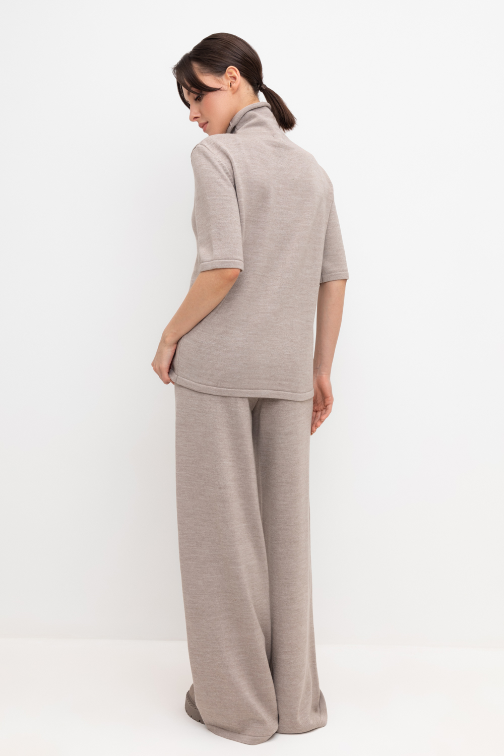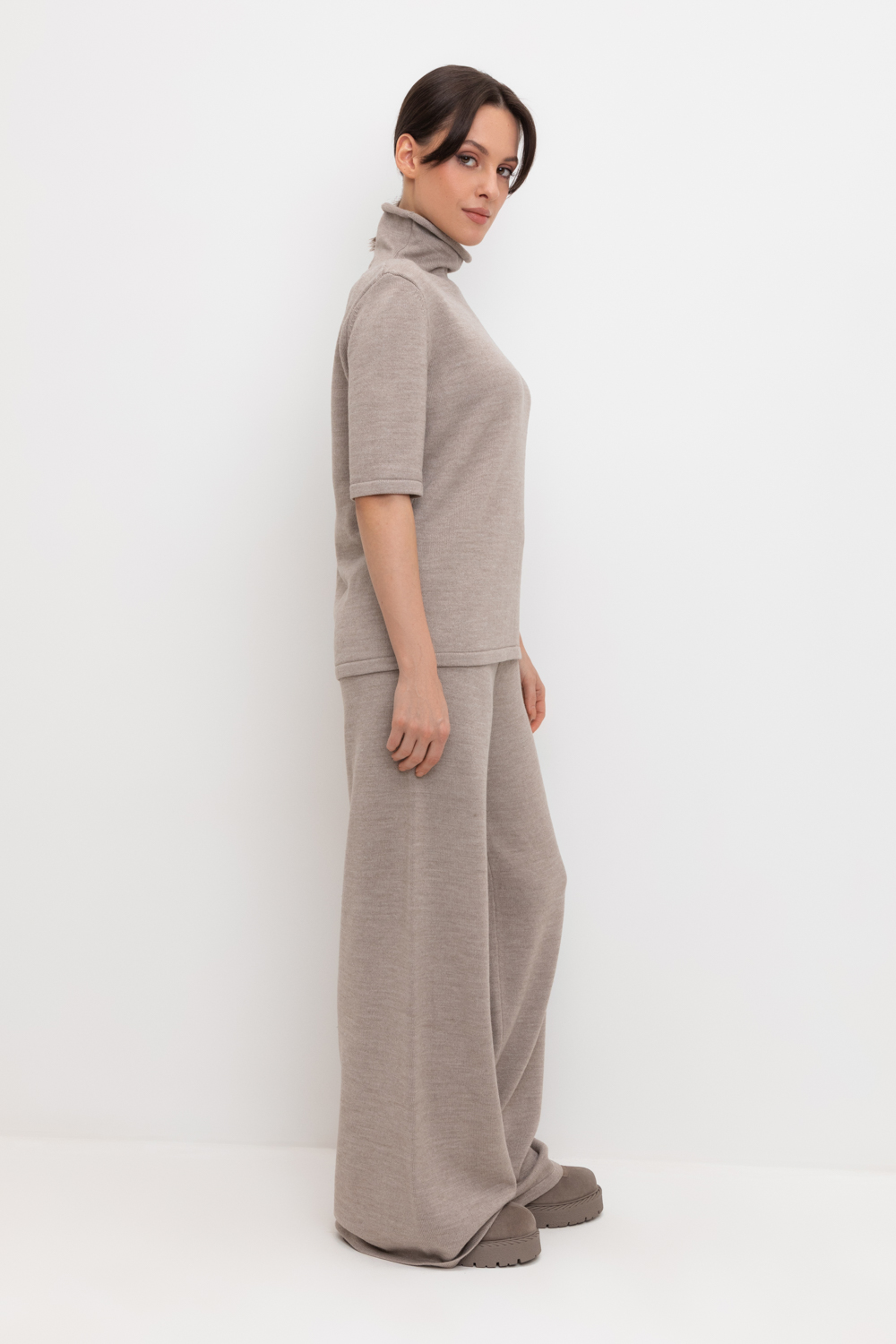 Удобные свободные вязаные брюки выполнены из мягкой полушерстяной пряжи. Шерсть в составе сохраняет тепло, а благодаря волокнам акрила изделие мягкое и дольше сохраняет форму.