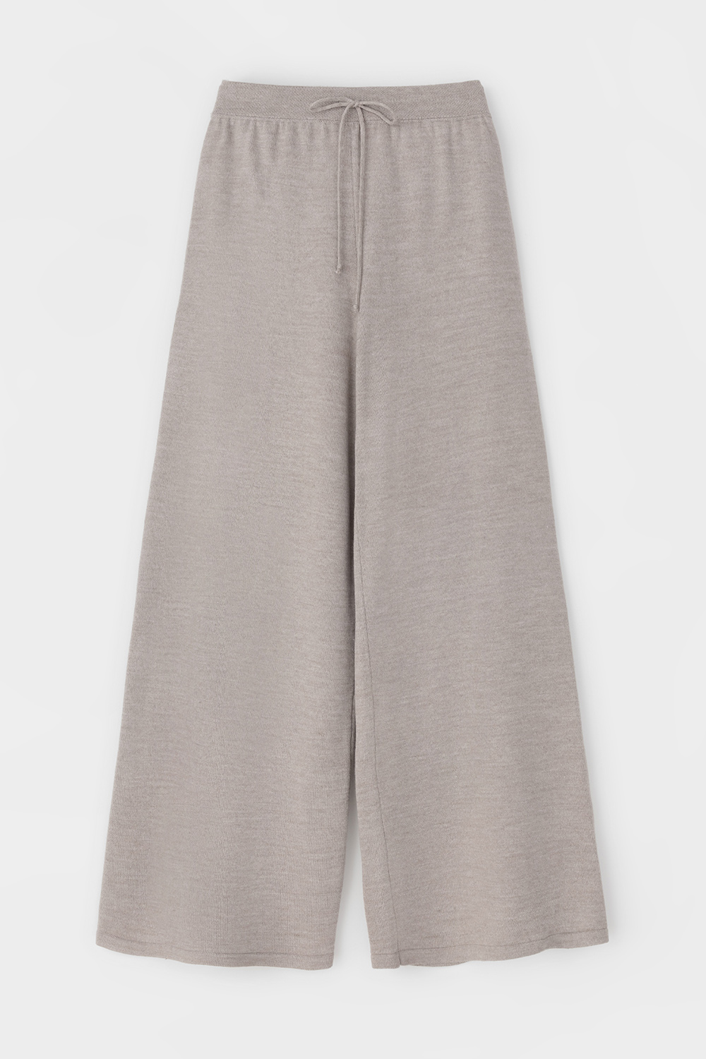 Пояс регулируется вязаным шнуром в тон брюк. Плотная фактура вязания согревает и сохраняет форму во время носки.