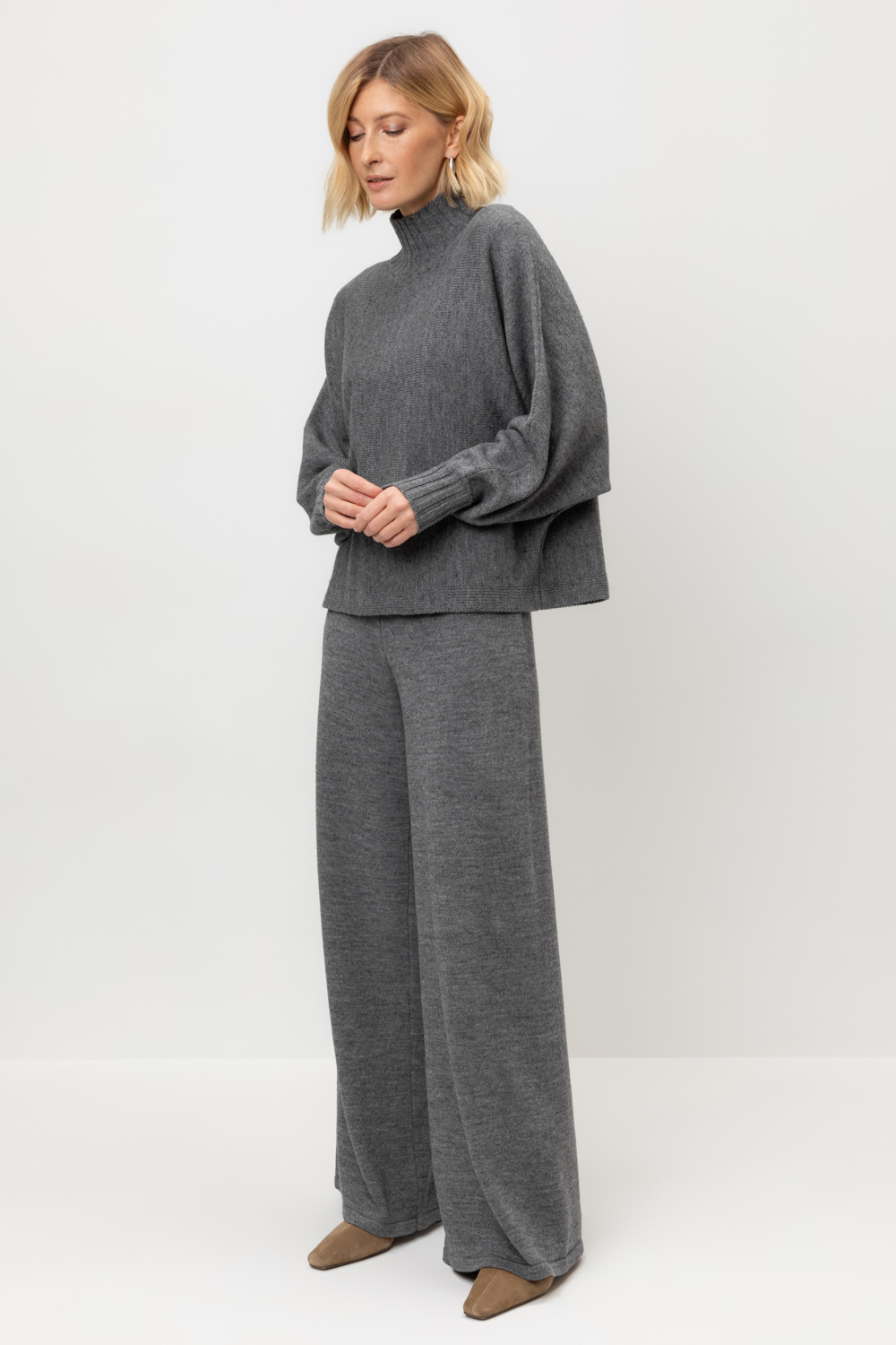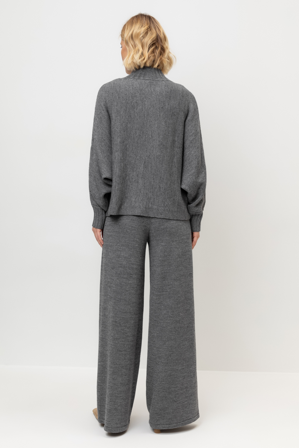 Удобные свободные вязаные брюки выполнены из мягкой полушерстяной пряжи. Шерсть в составе сохраняет тепло, а благодаря волокнам акрила изделие мягкое и дольше сохраняет форму.