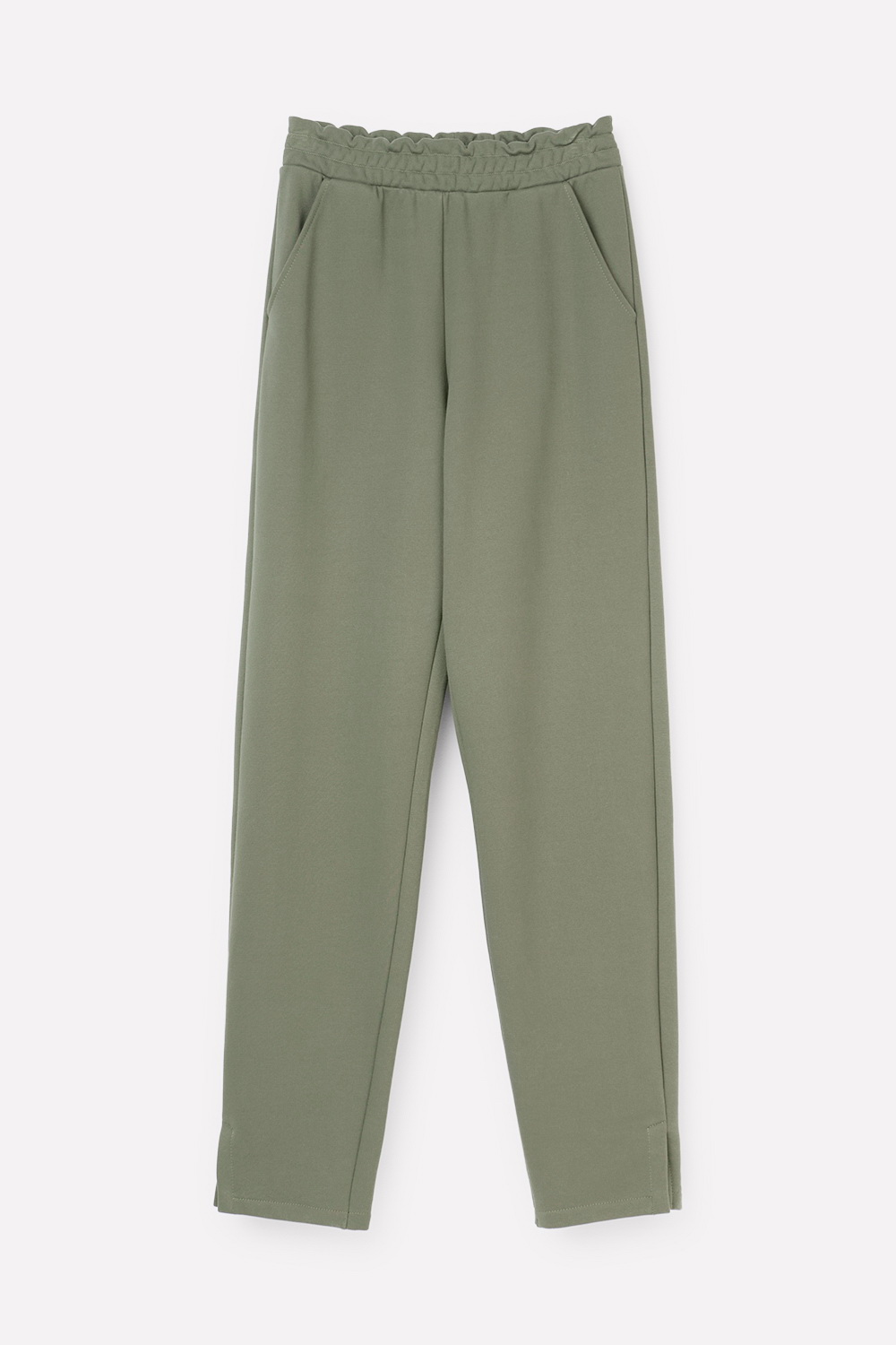 Брюки прямого кроя с боковыми карманами из петельчатого футера трехнитки. Гладкий и плотный материал на основе хлопка сохраняет форму.