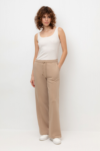 Брюки прямого кроя с боковыми карманами из петельчатого футера трехнитки. Гладкий и плотный материал на основе хлопка сохраняет форму.