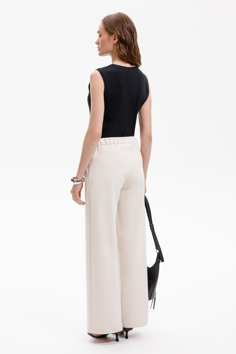 Брюки свободного кроя из премиального трикотажа DOUBLE FACE с добавлением спандекса. Основной акцент в дизайне изделия - стрелки с отстрочкой, создающие эффект длинных ног. Застежка на молнию и дополнительная застежка на кнопку обеспечивают надежную посадку и комфорт при носке. Натуральный состав трикотажа приятный к телу позволяет коже дышать, что делает его комфортным при носке в любое время года.