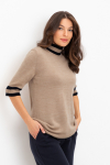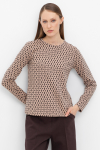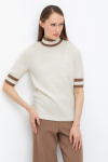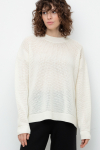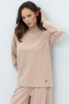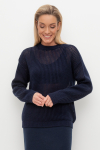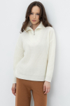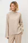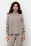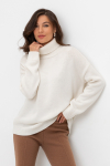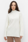 Уютный вязаный джемпер с воротником-стойкой из полушерстяной пряжи. Шерсть в составе сохраняет тепло, а волокна акрила добавляют мягкость и объем. Выполнен гладью. Комфортные длинные цельнокроеные рукава придают изделию объем.