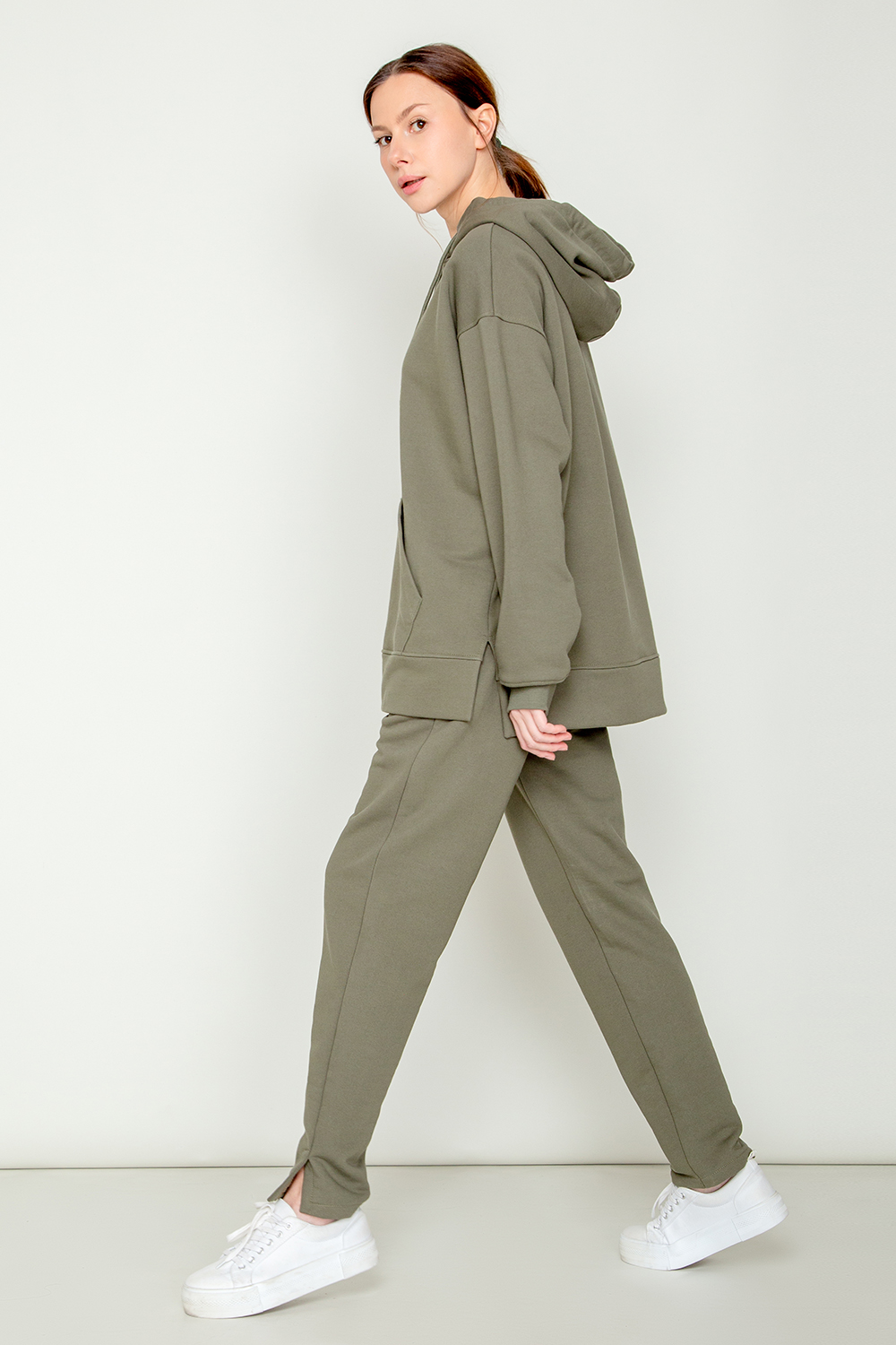 Трикотажная толстовка-оверсайз из петельчатого футера трехнитки. Капюшон регулируется с помощью шнура. У изделия свободная посадка, карман-кенгуру, эластичные манжеты. По бокам разрезы. Гладкий и плотный материал на основе хлопка сохраняет форму.