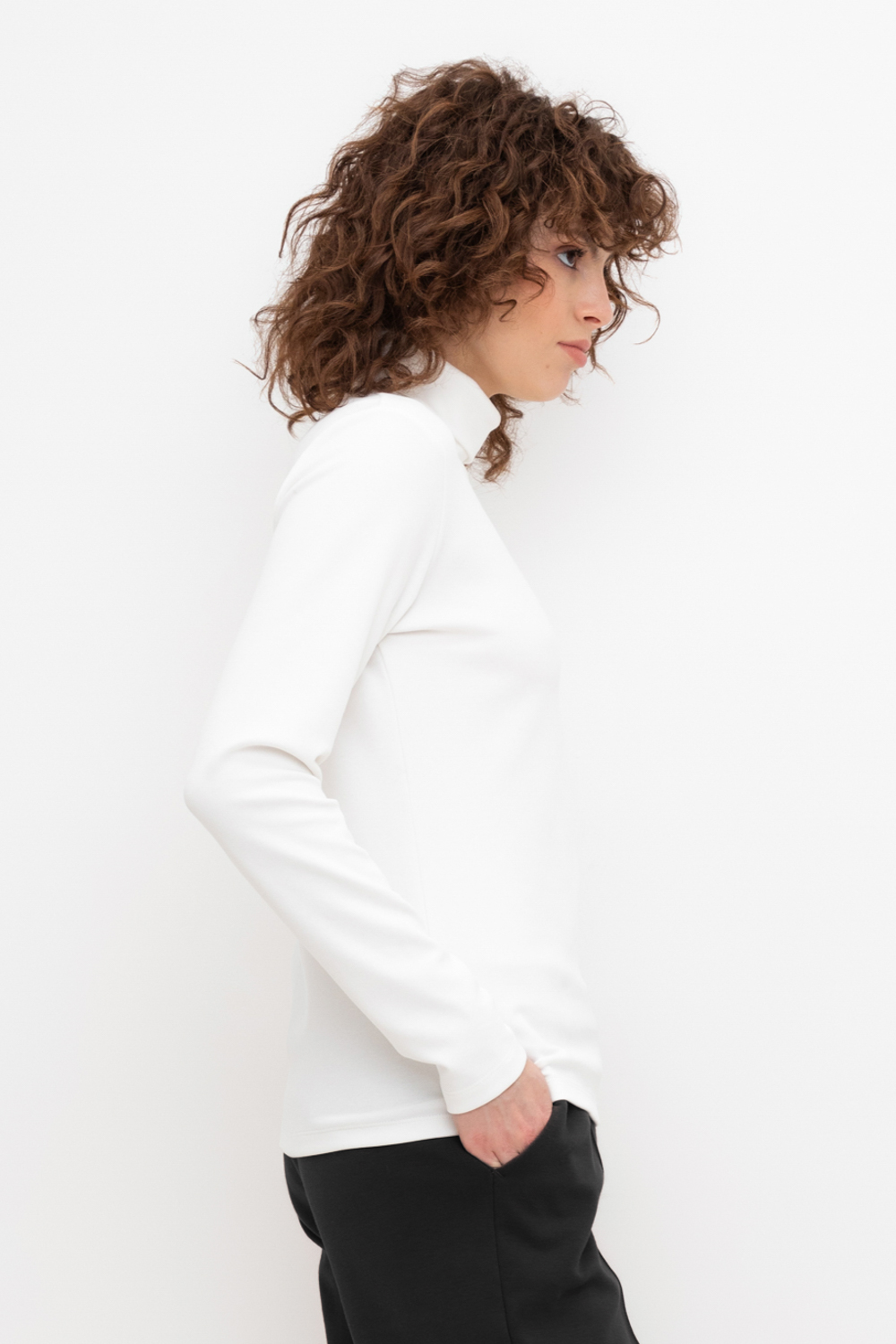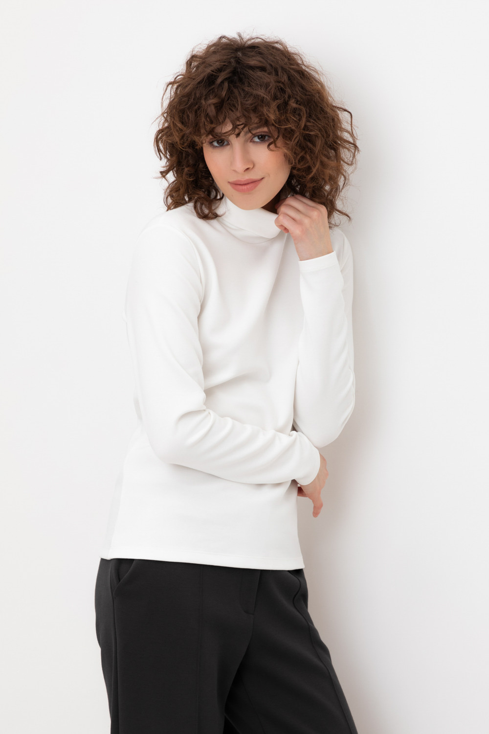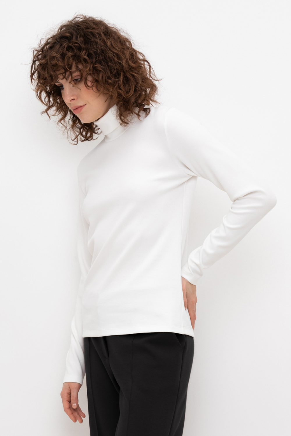 Базовая водолазка с воротником-стойкой из плотного однотонного трикотажа интерлок.