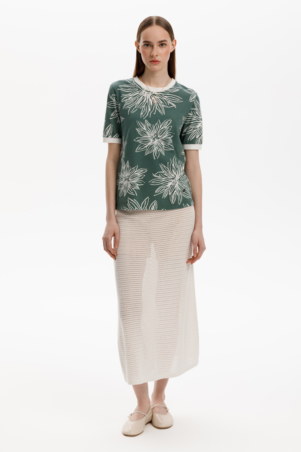 VN Фуфайка ЕВТ 3220 зеленый, крупные астры VN