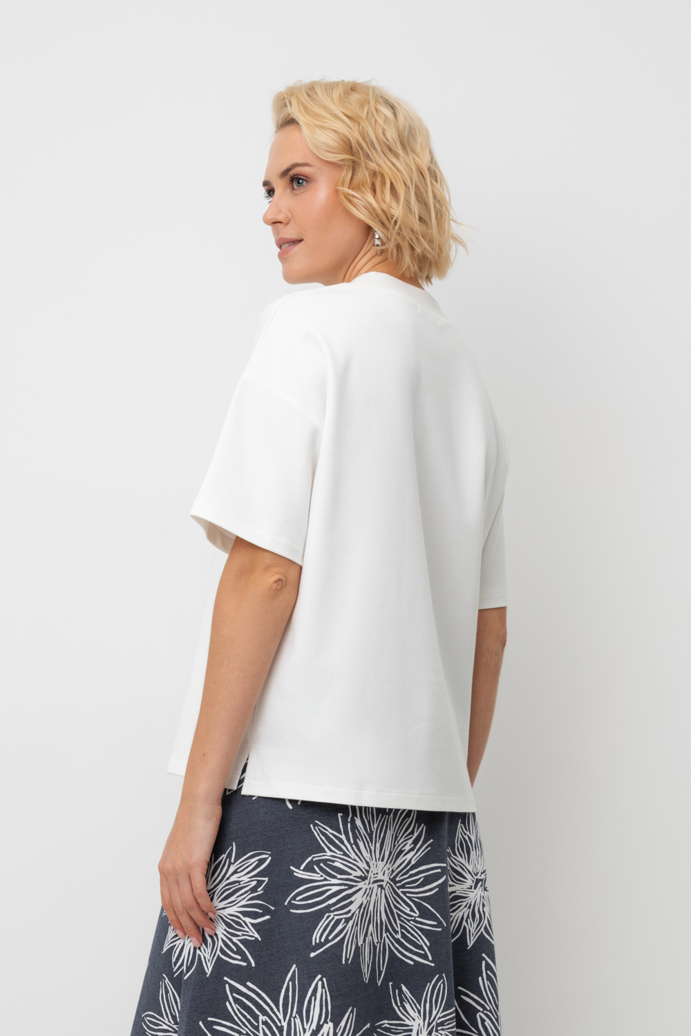 Блуза прямого силуэта со спущенным рукавом, изготовленная из премиального трикотажного полотна DOUBLE FACE. Мягкий на ощупь трикотаж выполнен из высококачественной гребенной пряжи.