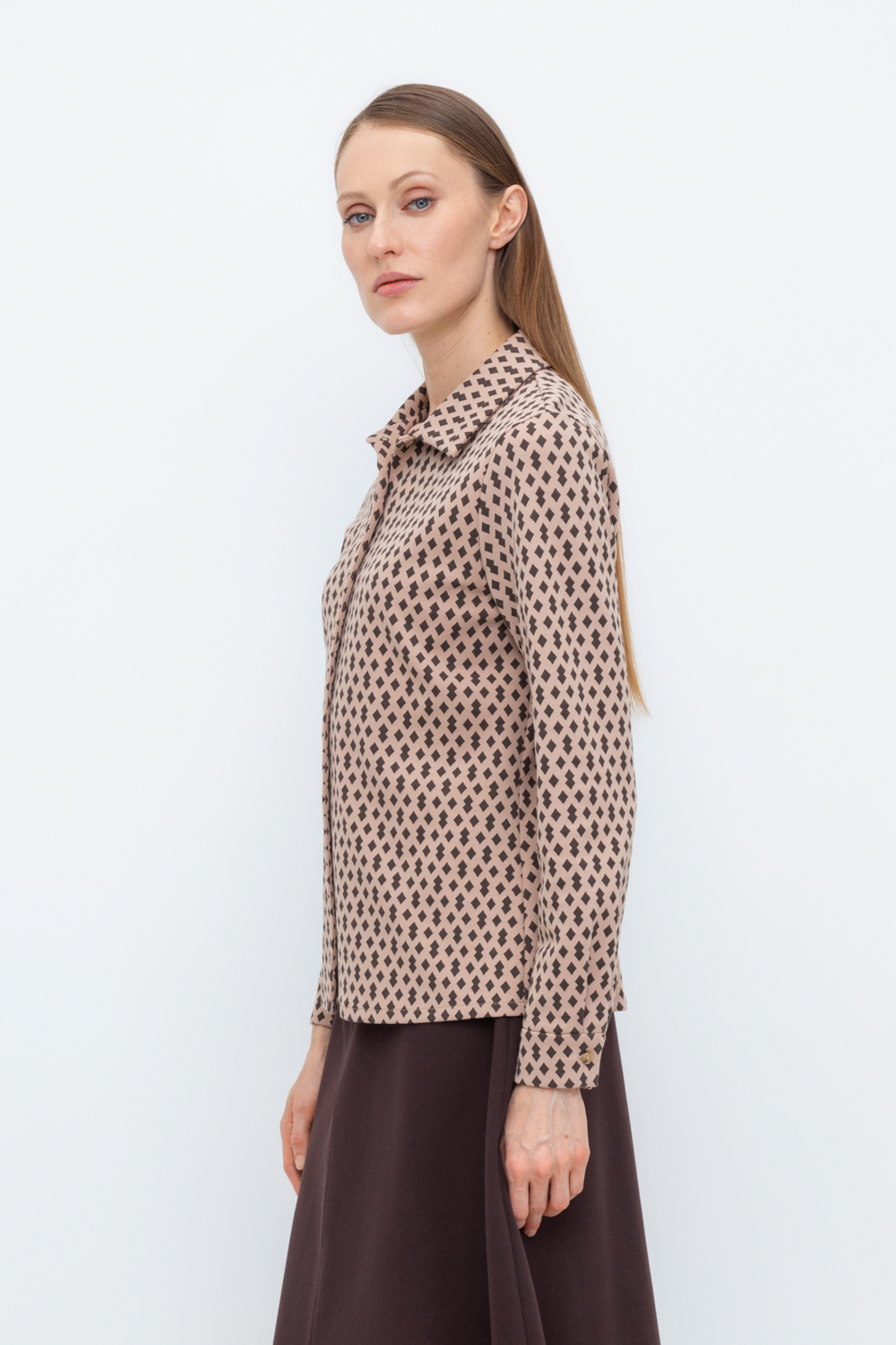 Рубашка свободного кроя из плотного гладкого трикотажа интерлок с длинными рукавами с застежкой на пуговицы