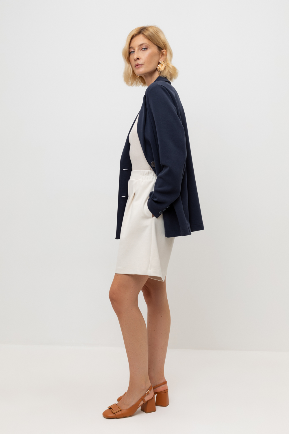 Шорты с защипами и широким трикотажным поясом— это идеальное сочетание элегантности и комфорта. Боковые карманы добавляют функциональности изделию. Изготовлены из премиального трикотажа DOUBLE FACE с добавлением спандекса.