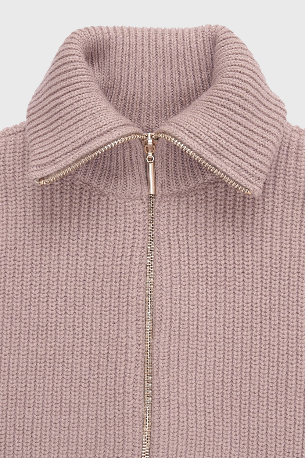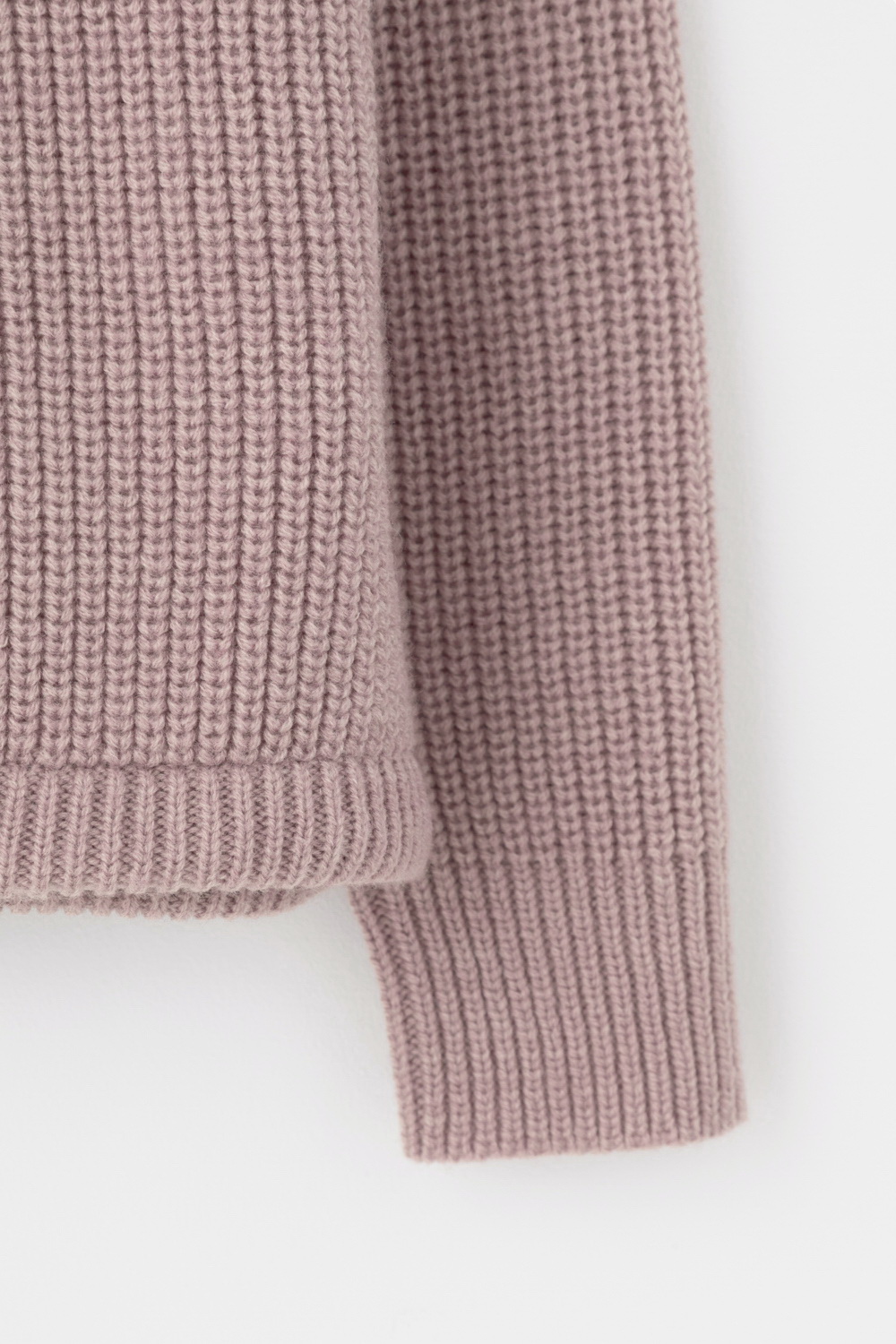 Джемпер вязаный на молнии с объёмными рукавами. Изготовлен из мягкой полушерстяной пряжи. Шерсть в составе сохраняет тепло, акрил делает изделие мягким.