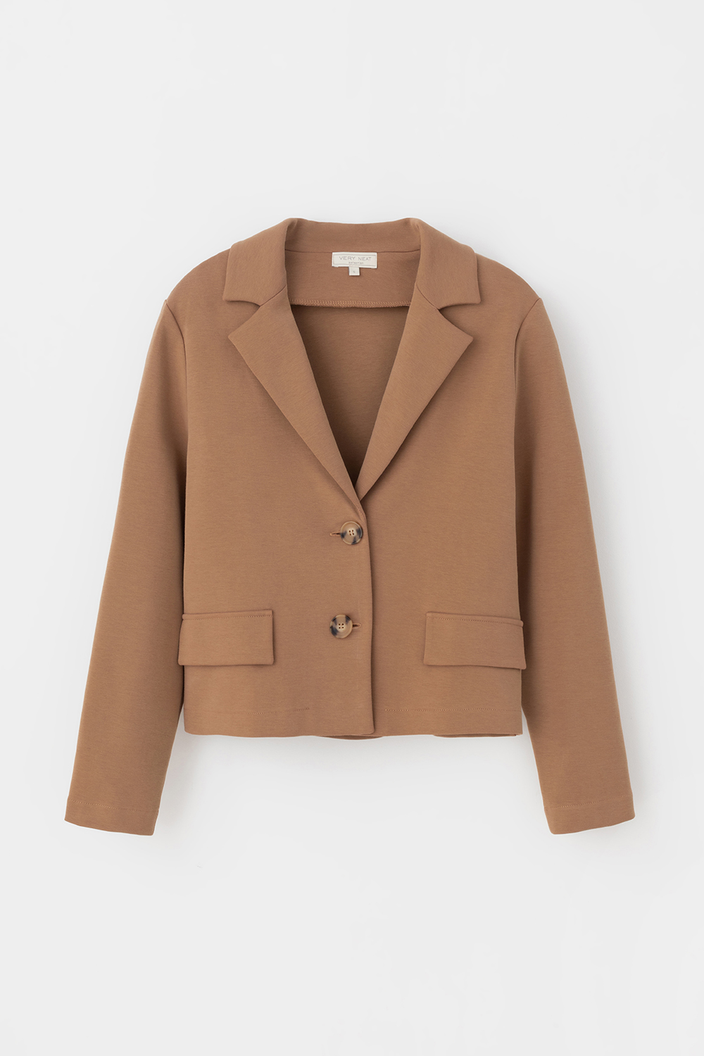 Женский укороченный жакет прямого кроя с имитацией карманов с клапаном из плотного набивного гладкого трикотажа интерлок. Гладкий и плотный материал на основе хлопка сохраняет форму.