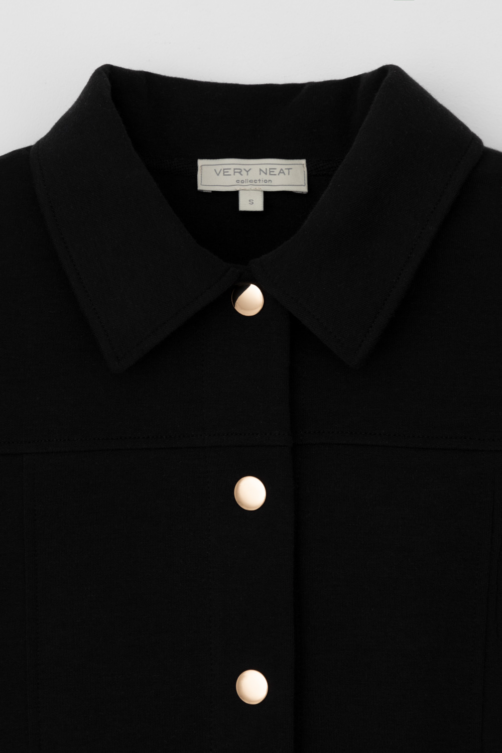 Укорочённый жакет, изготовленный из премиального трикотажного полотна DOUBLE FACE с добавлением спандекса. За счет фактуры переплетения и специальных обработок сохраняет силуэт и форму, что позволяет сочетать его как с юбкой, так и с брюками. Хлопок в составе добавит комфорта при носке.