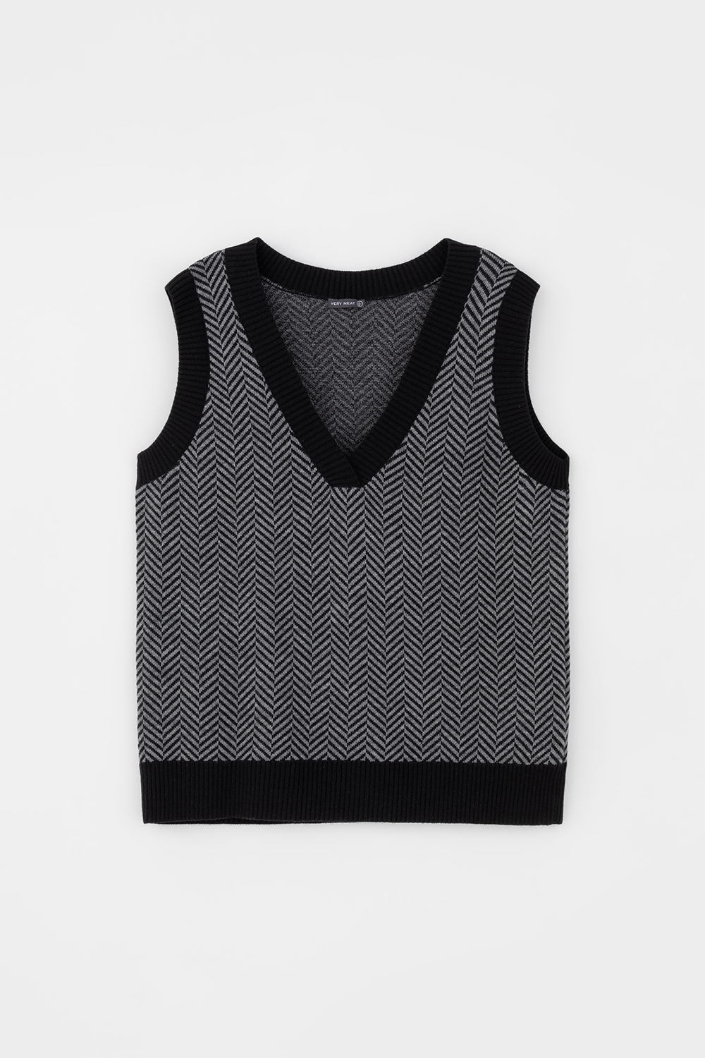 Вязаный жилет с элегантным глубоким вырезом. В составе 50% шерсти и 50% акрила. Шерсть в составе сохраняет тепло, а акрил делает изделие мягким и объемным.