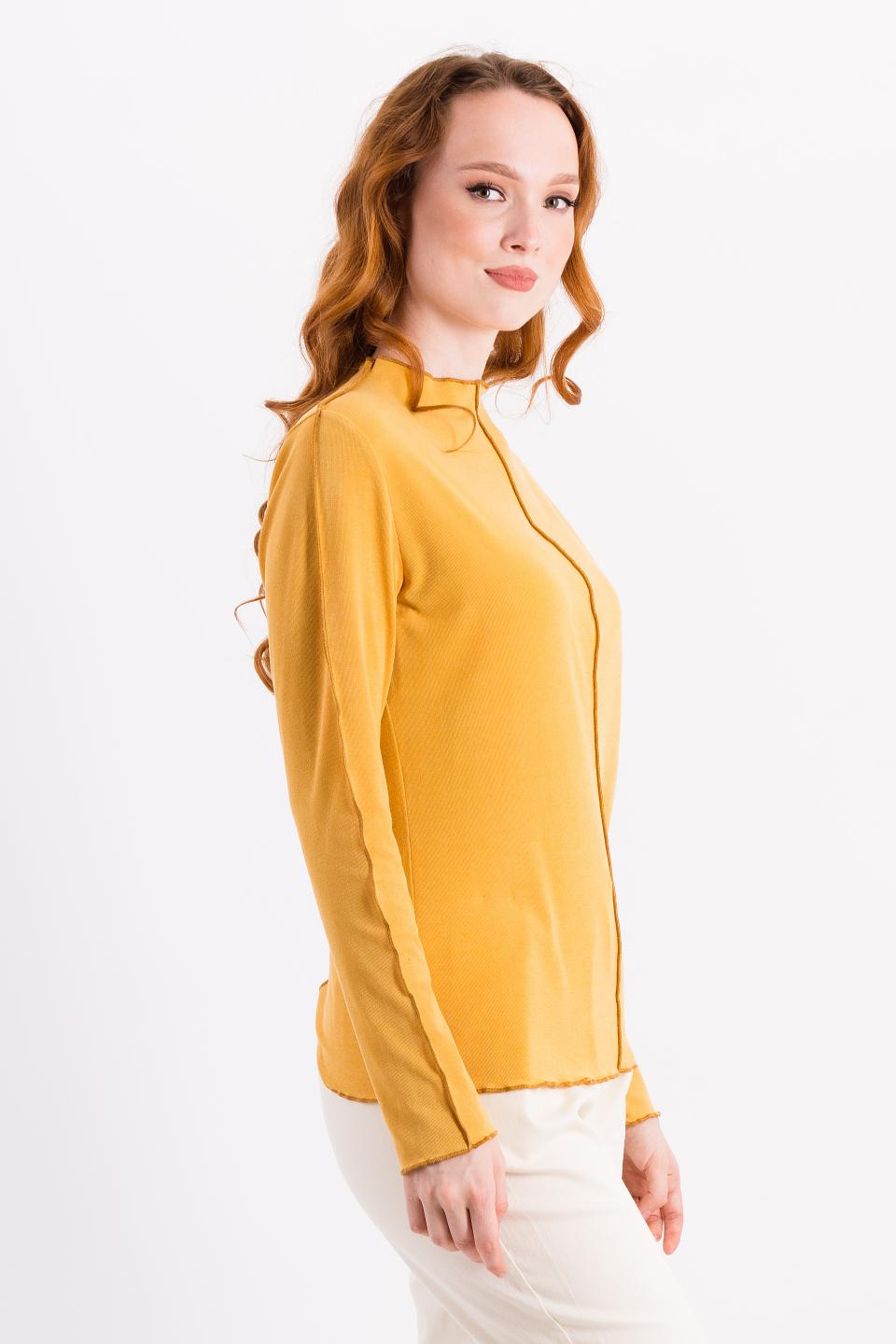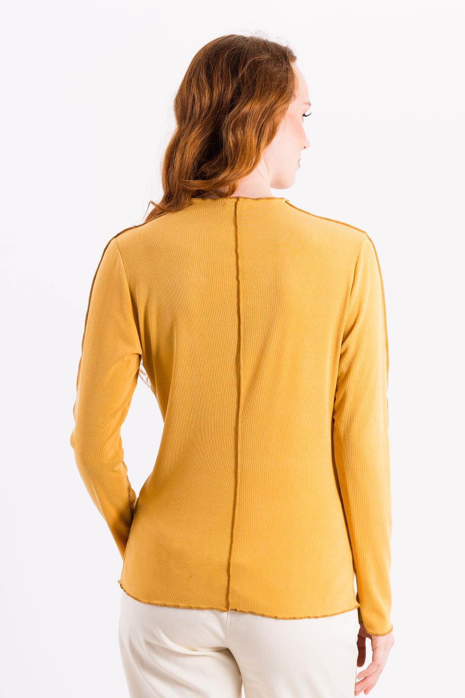 Описание: Яркий тренд - внешние швы! Крепкая строчка мелкого оверлока создает фактурный срез горловины и низа, а вертикальные швы зрительно стройнят фигуру.