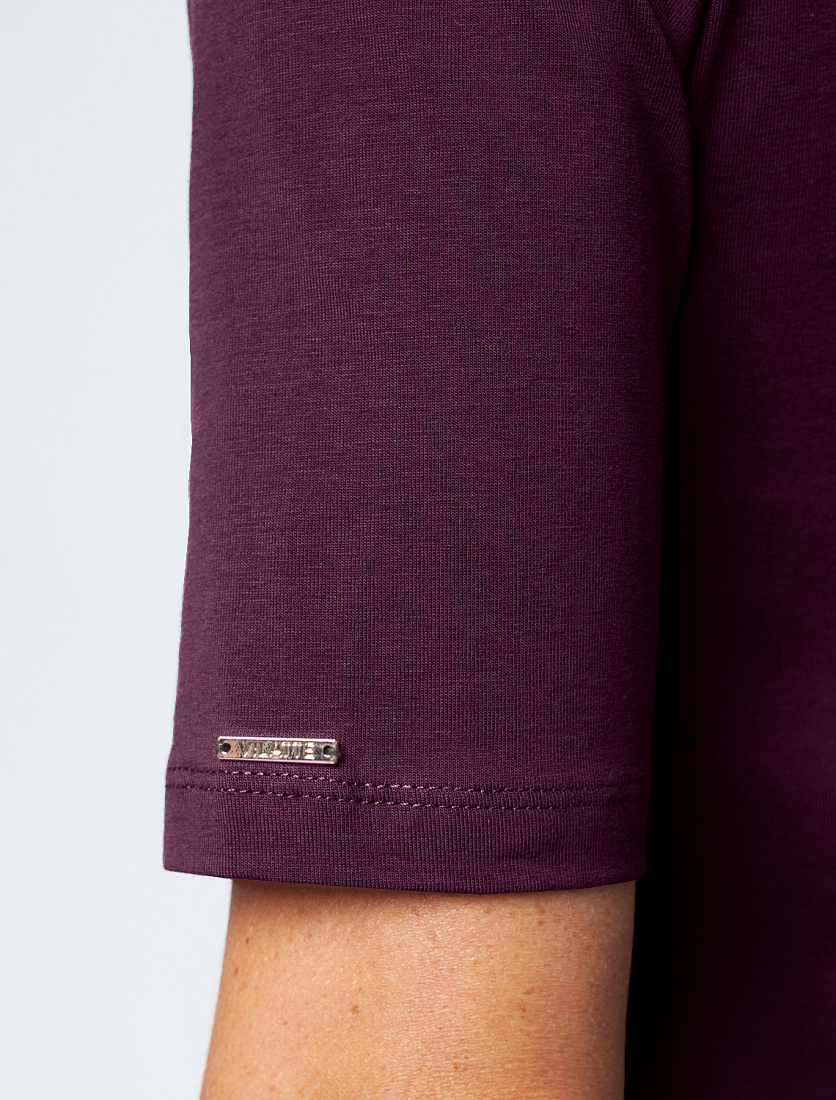 Базовая водолазка цвета бургунди с коротким рукавом выполнена из премиального хлопка с добавлением эластичных волокон. Гладкий трикотаж обеспечит гарантированный комфорт и удобство в использовании. На рукаве изделия металлическая нашивка с логотипом бренда. Совет стилиста: водолазку с коротким удобно сочетать с жакетом или блузкой. Также как самостоятельный верх к широким брюкам.