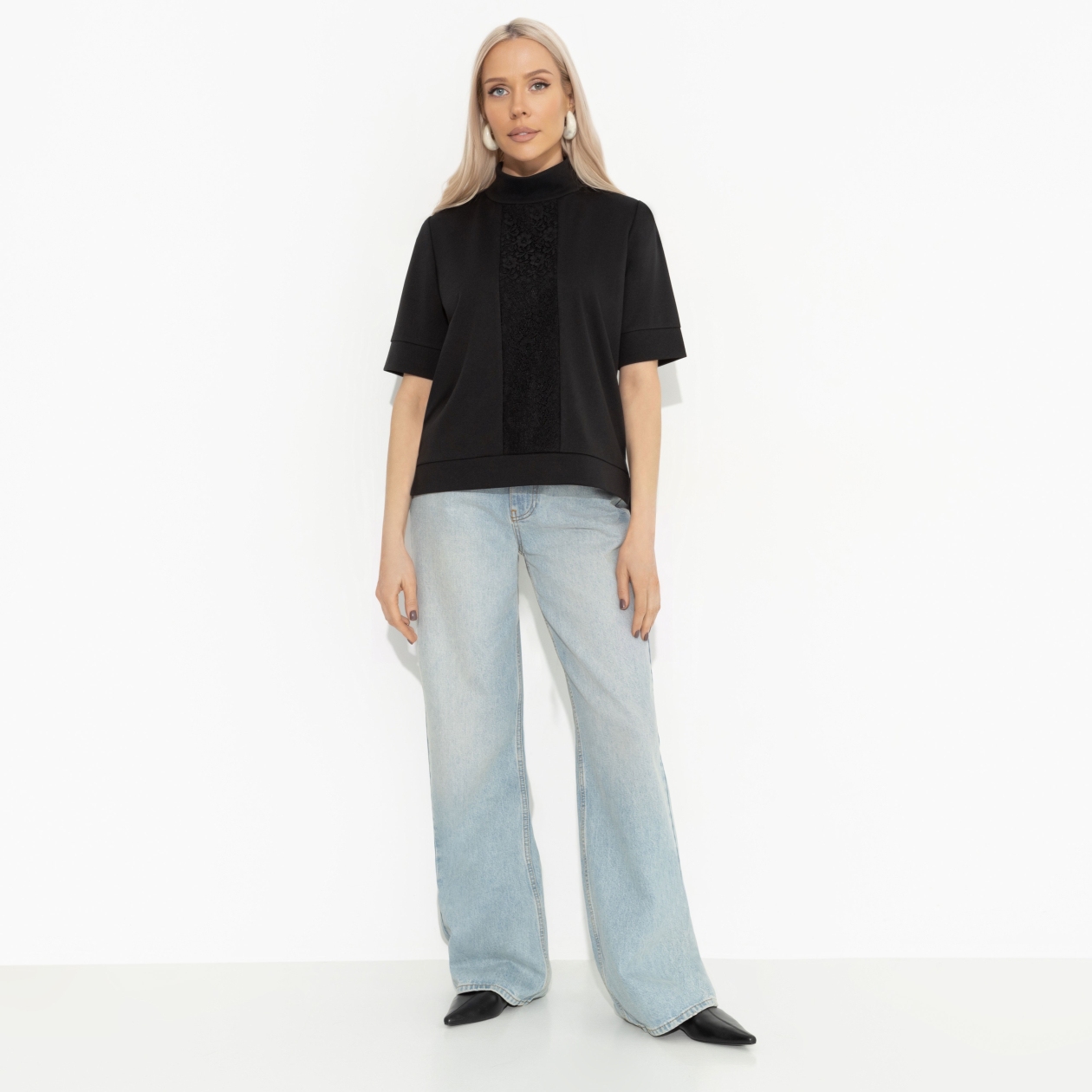 Водолазка комбинированная с кружевом, Фирменное приветствие (черная, со вставкой)