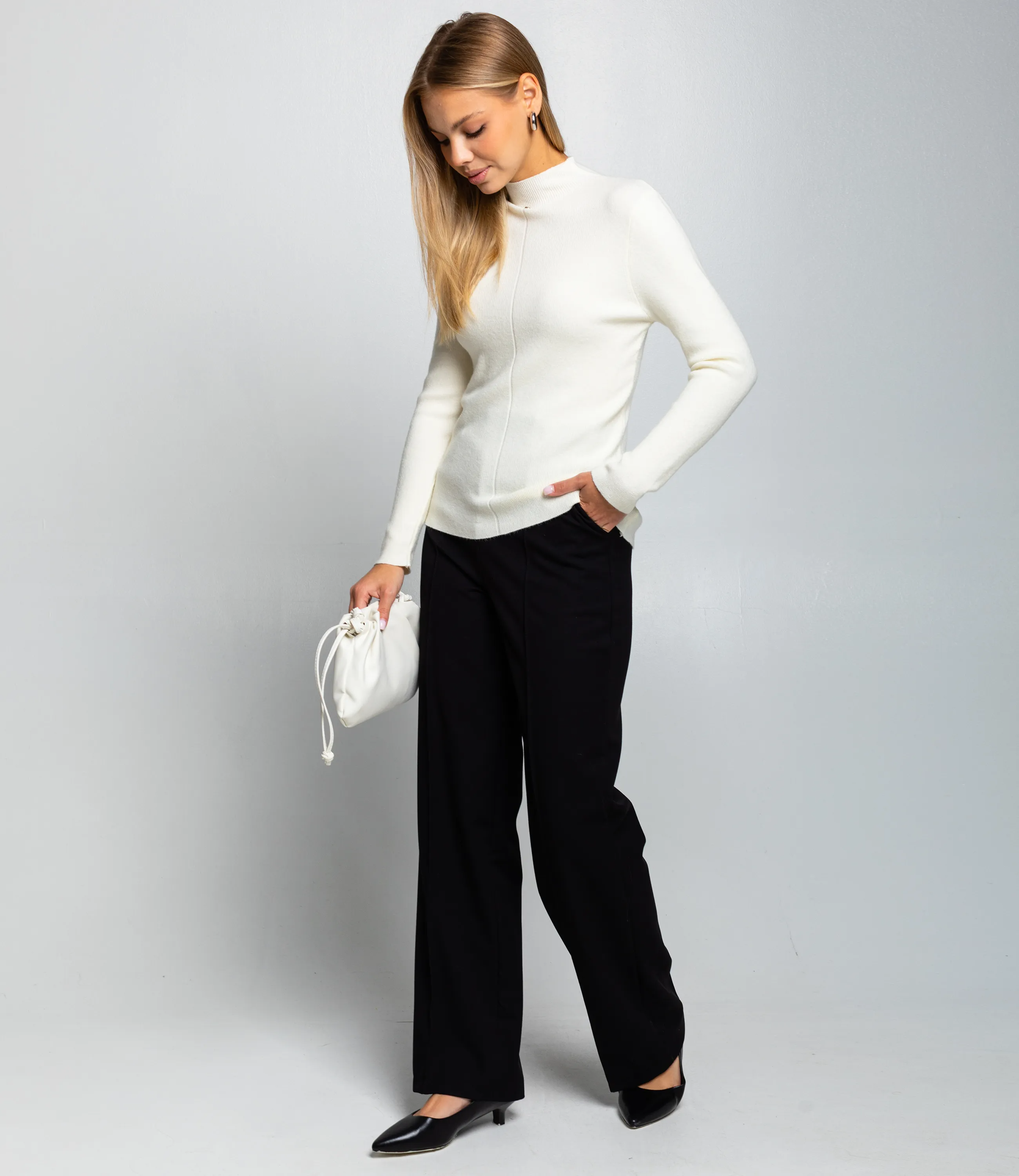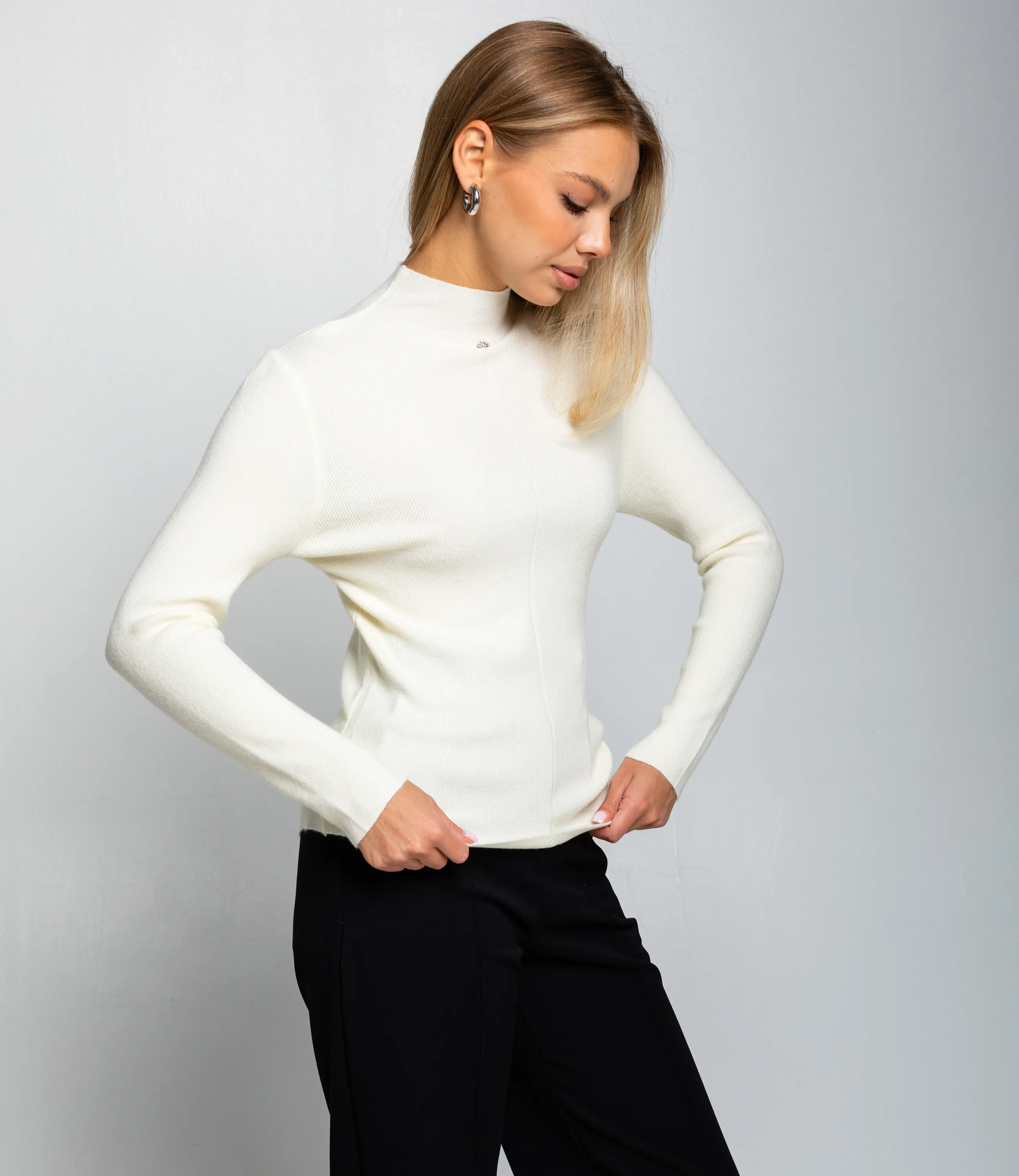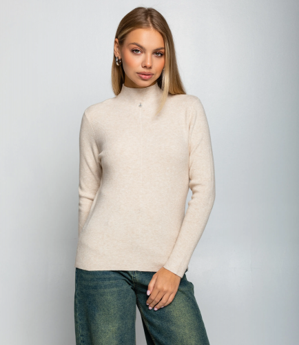 Водолазка — это часть гардероба, которая подчёркивает женственность и утончённость каждой покупательницы. Модель выполнена из гладкого трикотажного материала с тонкой и плотной фактурой; облегающий силуэт, классический высокий воротник и длинные приталенные рукава создают лаконичный и универсальный образ. По центру передней части проходит едва заметный вертикальный шов, добавляющий композиционной строгости и изящества, а небольшая металлическая подвеска‑улыбка со стразами придаёт изделию аккуратную стильную деталь. Водолазка отлично вписывается в базовый гардероб и легко комбинируется с брюками и юбками, а также служит идеальным слоем в многослойных образах. Для пошива использована ткань 65% хлопок, 30% полиэстер, 5% эластан: хлопок обеспечивает комфорт и хорошую воздухопроницаемость, полиэстер повышает прочность и стойкость цвета, эластан гарантирует посадку и сохранение формы после носки и стирок. Материал устойчив к частым стиркам, не деформируется и долго сохраняет презентабельный вид, что снижает количество возвратов и рекламаций. Для оптовых покупателей водолазка является выгодной и оборотистой позицией: базовый дизайн упрощает формирование размерного ряда и уменьшает риск непроданных остатков, а универсальность модели повышает её привлекательность для широкой аудитории. Рост 168, 89-63-90.